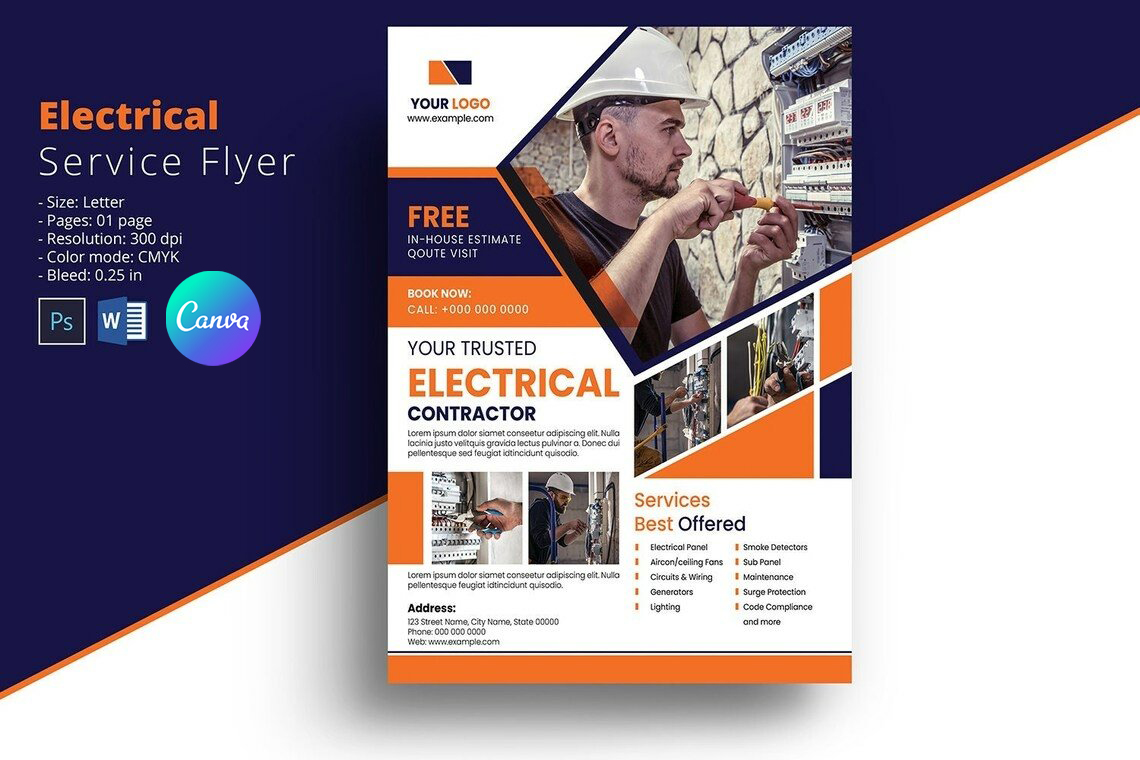 Promote your electrical services with this modern, fully customizable flyer template. Perfect for advertising installations, repairs, or maintenance. Easy to edit and ideal for both print and digital marketing campaigns.