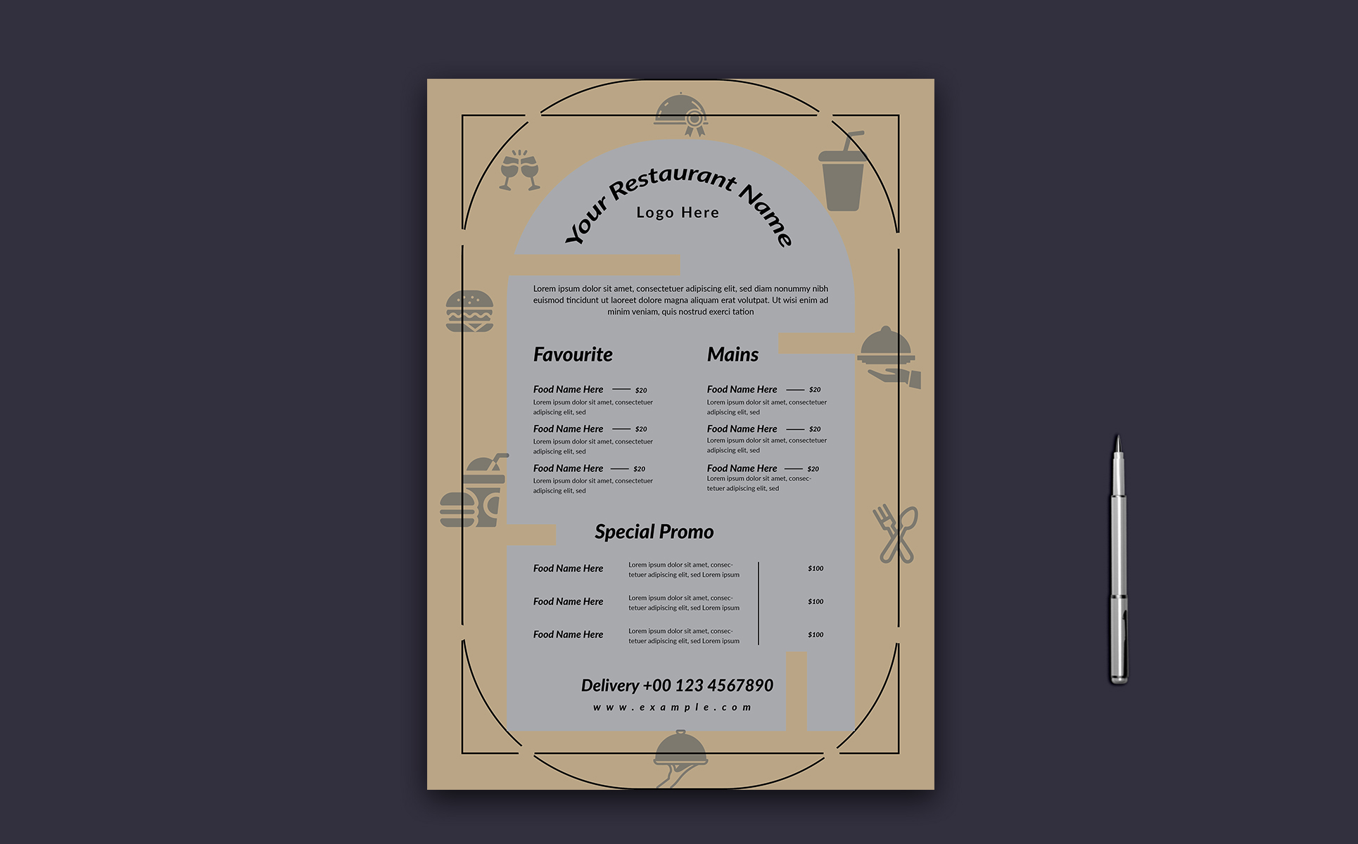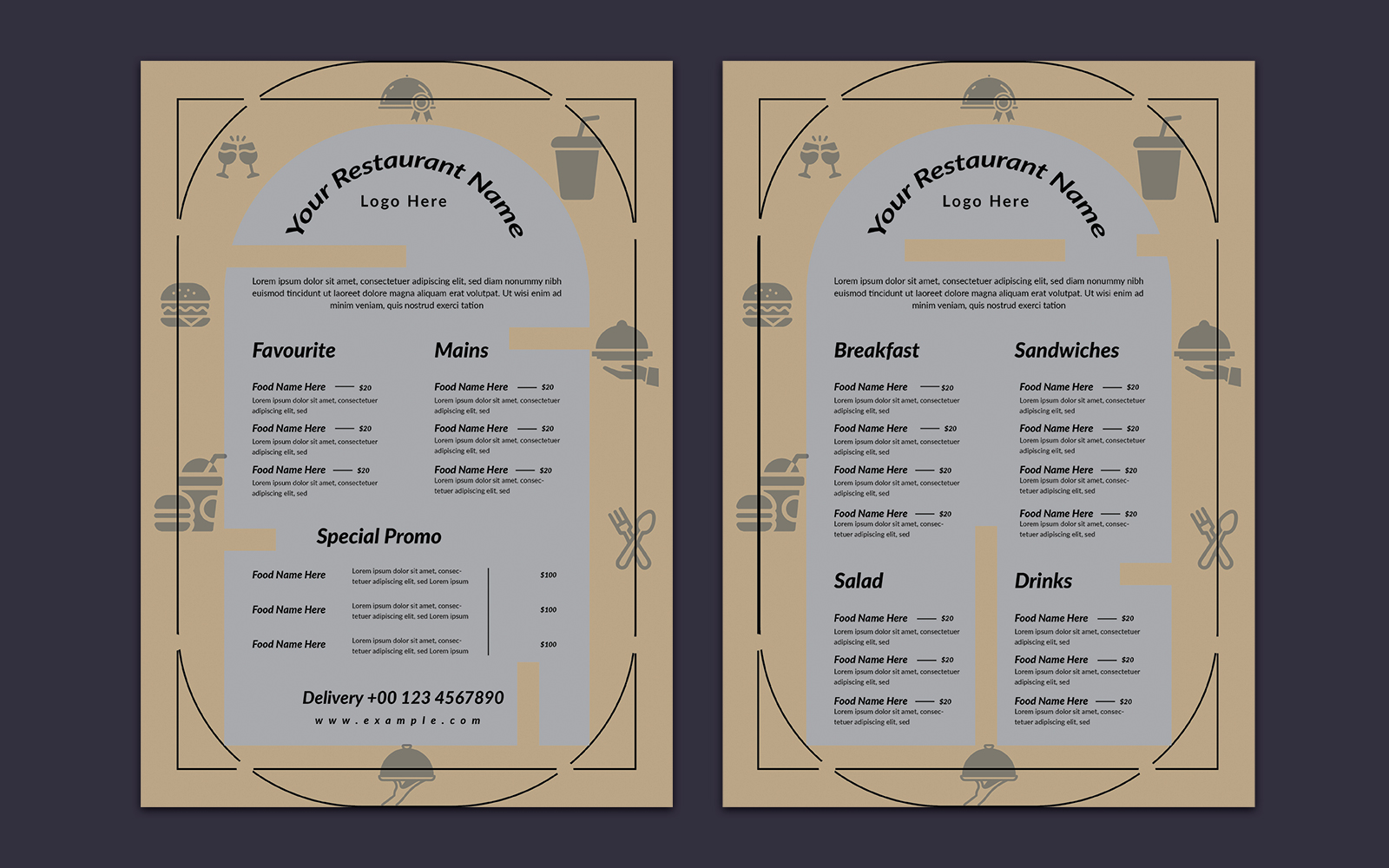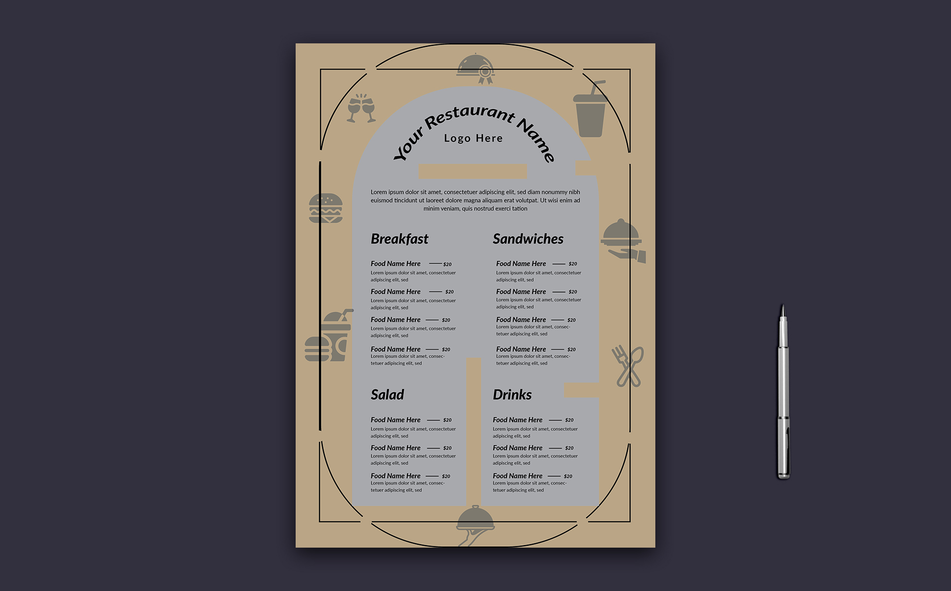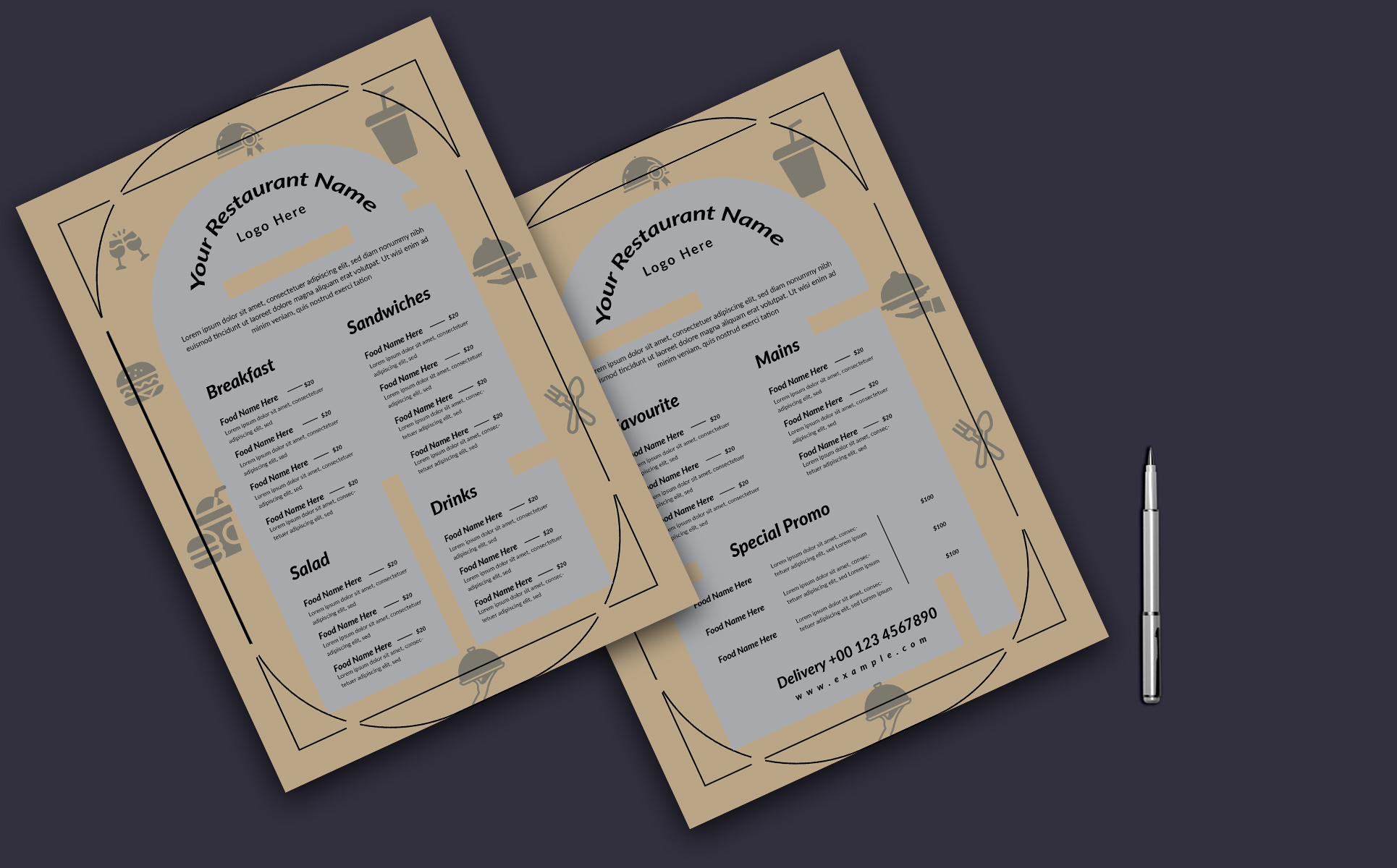 Elegant Food Menu Template Layout Corporate Identity