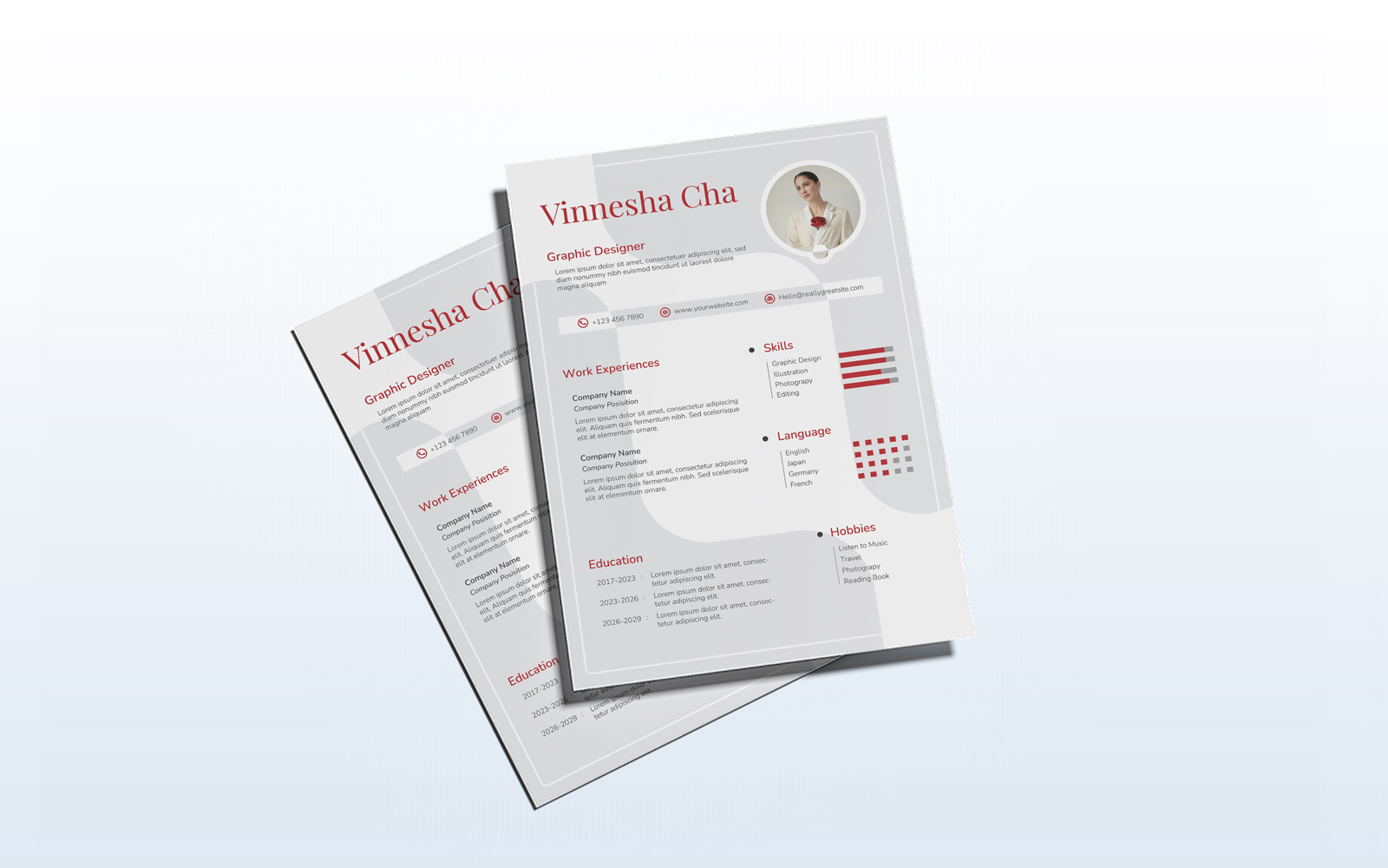 Present your professional journey with confidence using this Elegant Minimalist CV Template. Designed with clean lines, soft curves, and strategic red accents, it's perfect for graphic designers, marketers, and other creative professionals. This template is easy to edit, fully layered, and ready for both print and digital use, ensuring a seamless customization experience to reflect your personal brand.