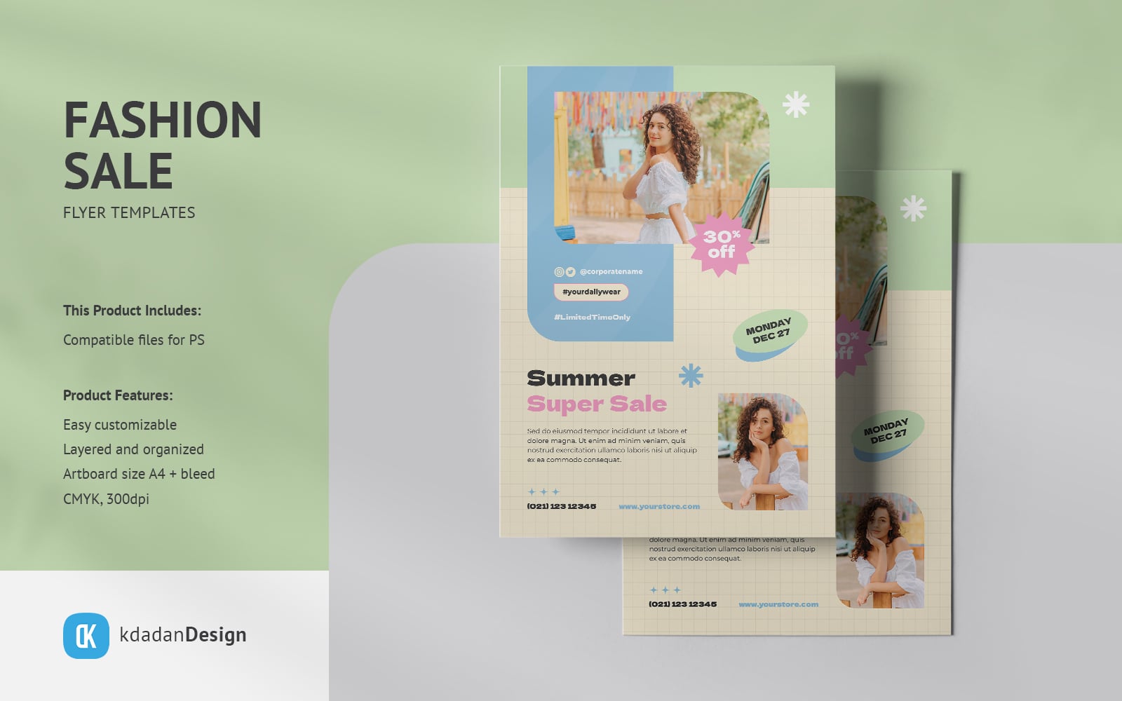 Overview : Clean, Modern and Professional Fashion Flyer Set. Fully customizable, easy to use and replace colors & text, image containers are Smart-Objects to make it easy for you to add images and edit files.