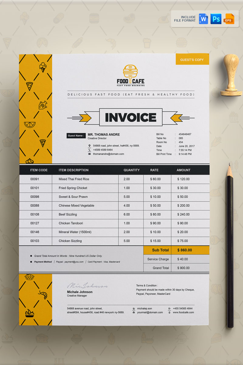 Flexible and professional invoice design template is made in multiple software format so its easy to edit and use as your skill. This invoice template is professionally organized and labelled so every beginner can edit it like a pro. you can change image, text, logo and color very quick and easy.