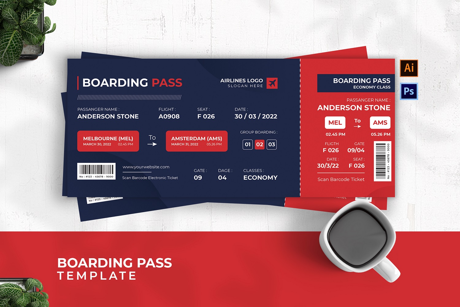 This Boarding Pass template has fully editable and customizable PSD and AI files. This Boarding Pass template also has creative style, and it's suitable for your any purpose such as: businesses, corporate, agency and can be also used for any other publishing like marketing promotions and company profile.