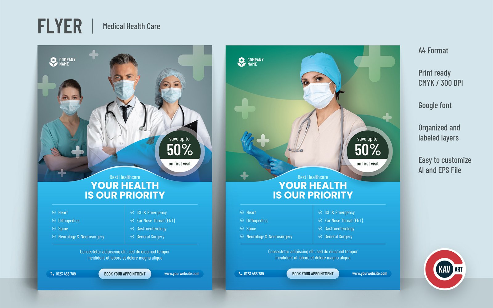 A creative professional flyer or poster template is perfect for promoting medical health care services with an elegant print-ready design. You can use this template for any other service as well, Whichever is suitable for your target audience. Fully editable and organized layers in flyer designs.