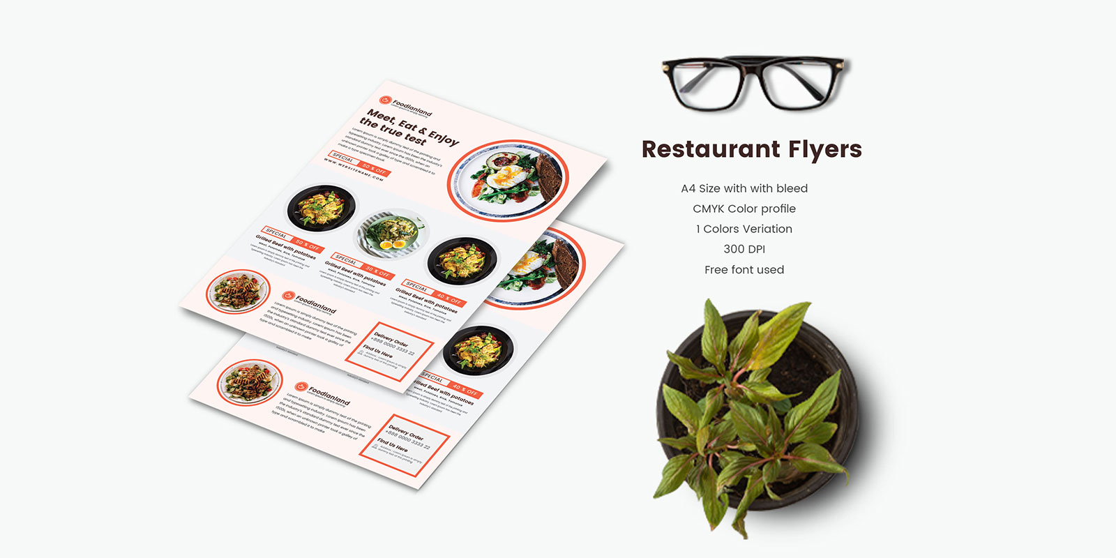 Food Restaurant Flyer Template For promoting Restaurant services company Corporate Identity