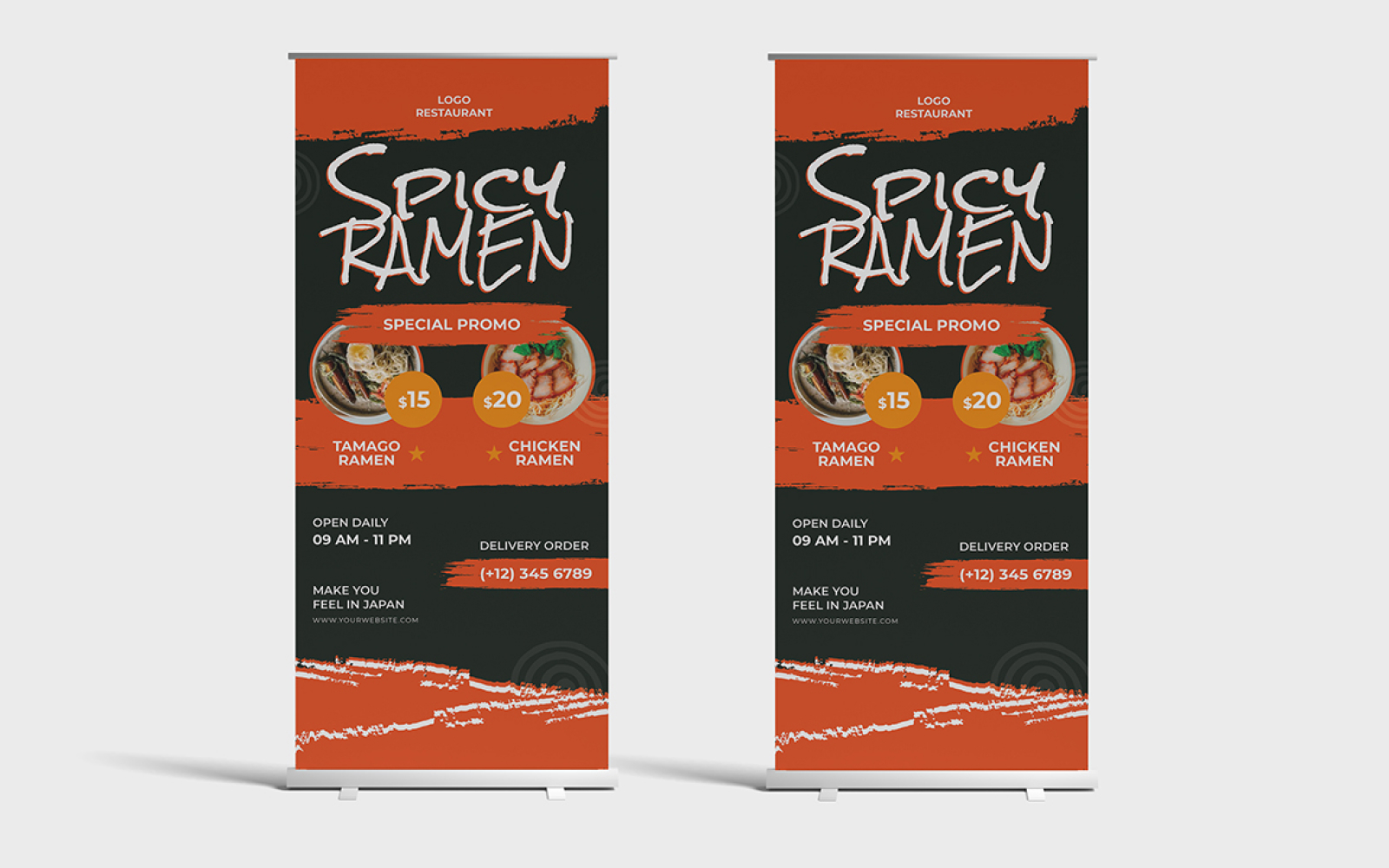 Multipurpose roll up banner for all kinds of business and corporate purpose usages. Files are arranged, editable and easy to access.