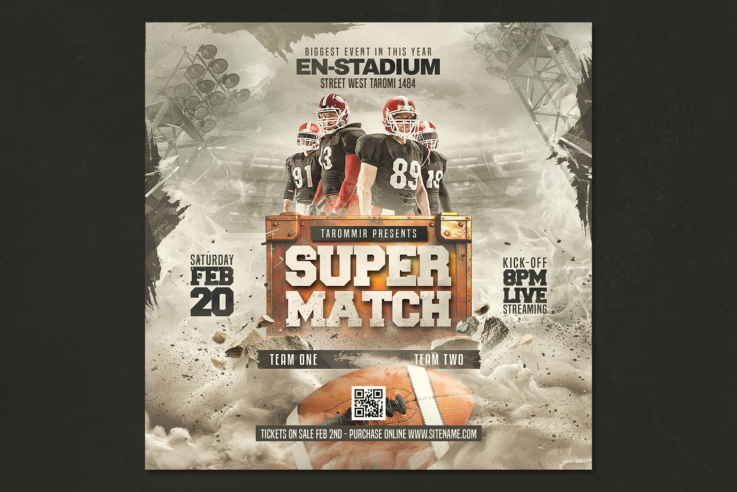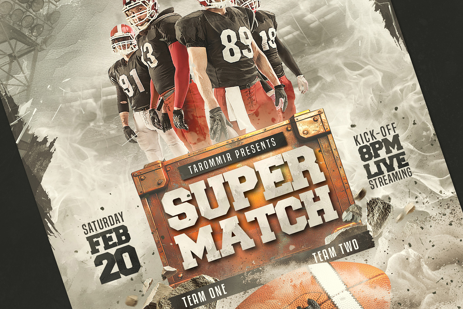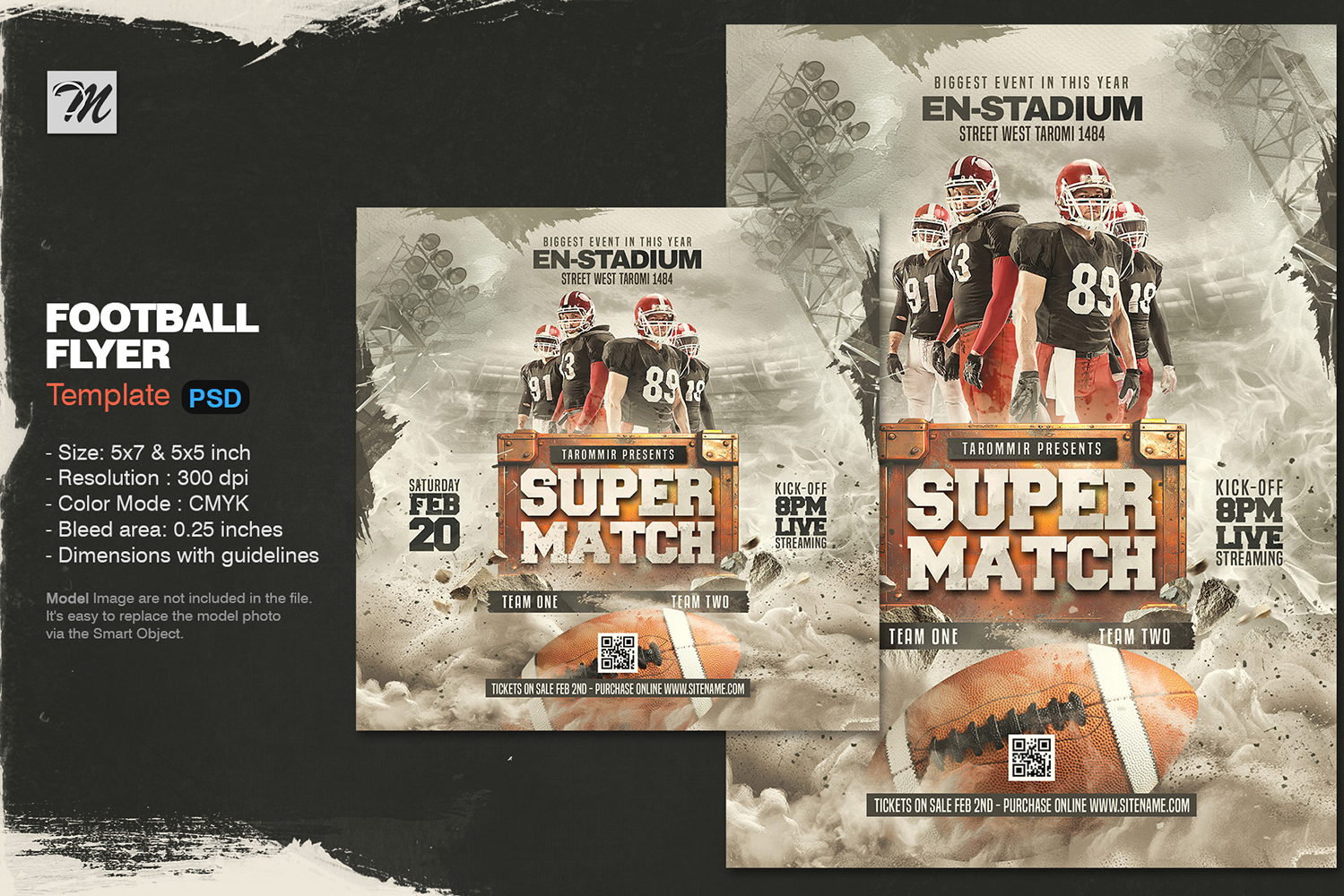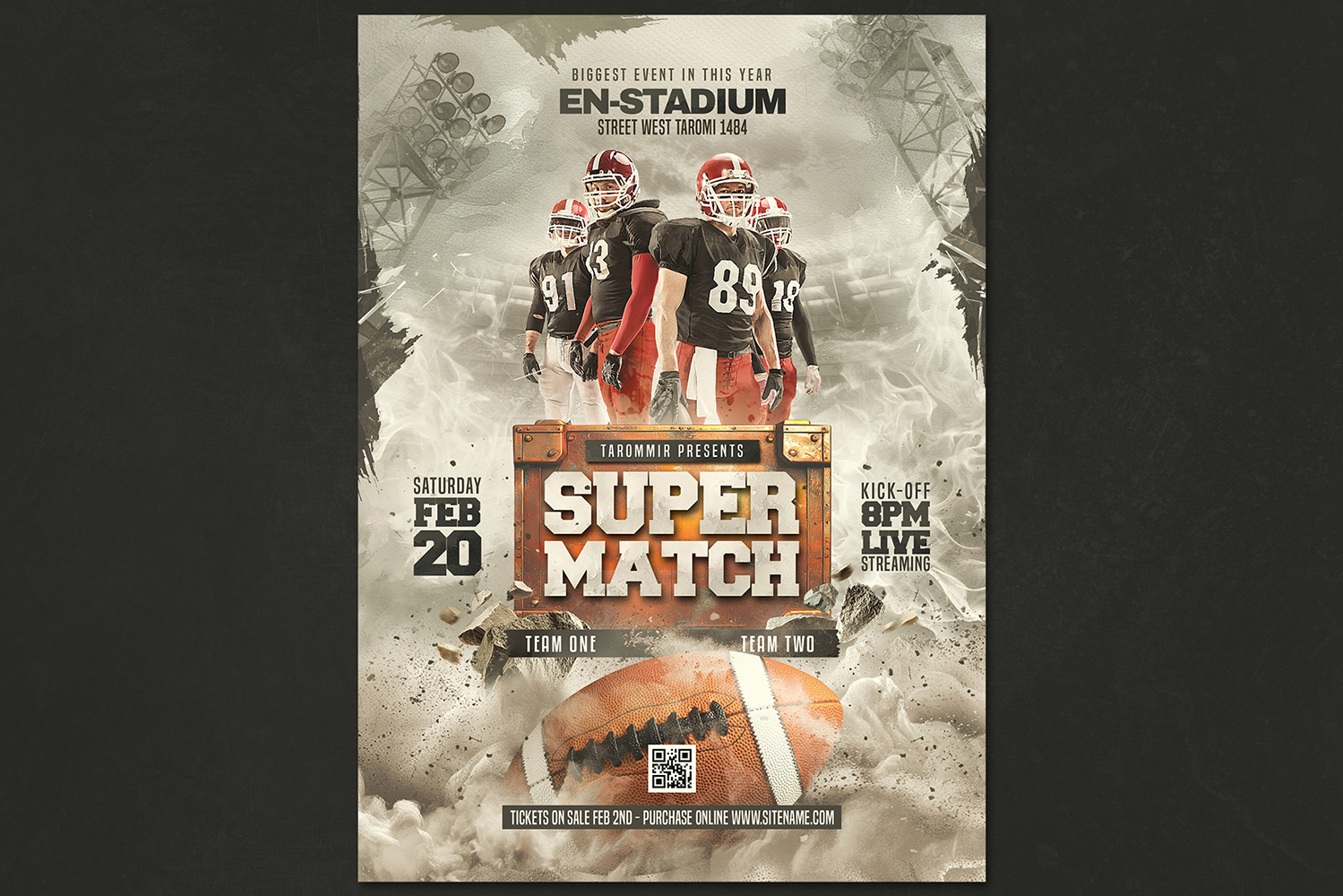 Football flyer template suitable for all sports related businesses. Create stunning flyers quickly and simplify workflows with these easy-to-edit templates. Use traditional print advertising such as magazine ads, newspaper ad placement, promotional posters and any other way you can think of.