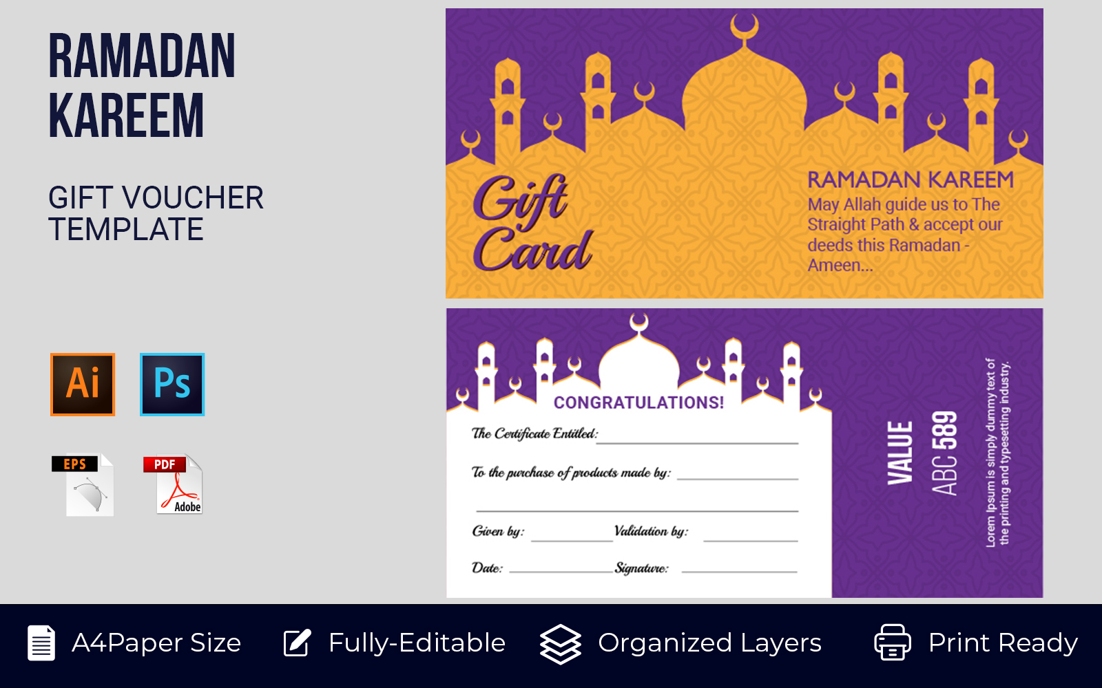 Collection of Ramadan Gift Coupon with different discount offer, Gift Voucher Template Promotion Sale discount, Gift Voucher template perfect for prints, flyers, banners, promotion, special offer.