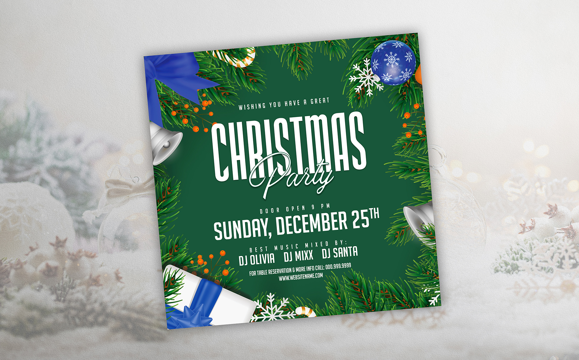 Christmas Party Flyer Template PSD. Fully customizable party flyer template for Photoshop. Easy to use and fully customizable. Buy this template now and start using it. Shorten your working time.