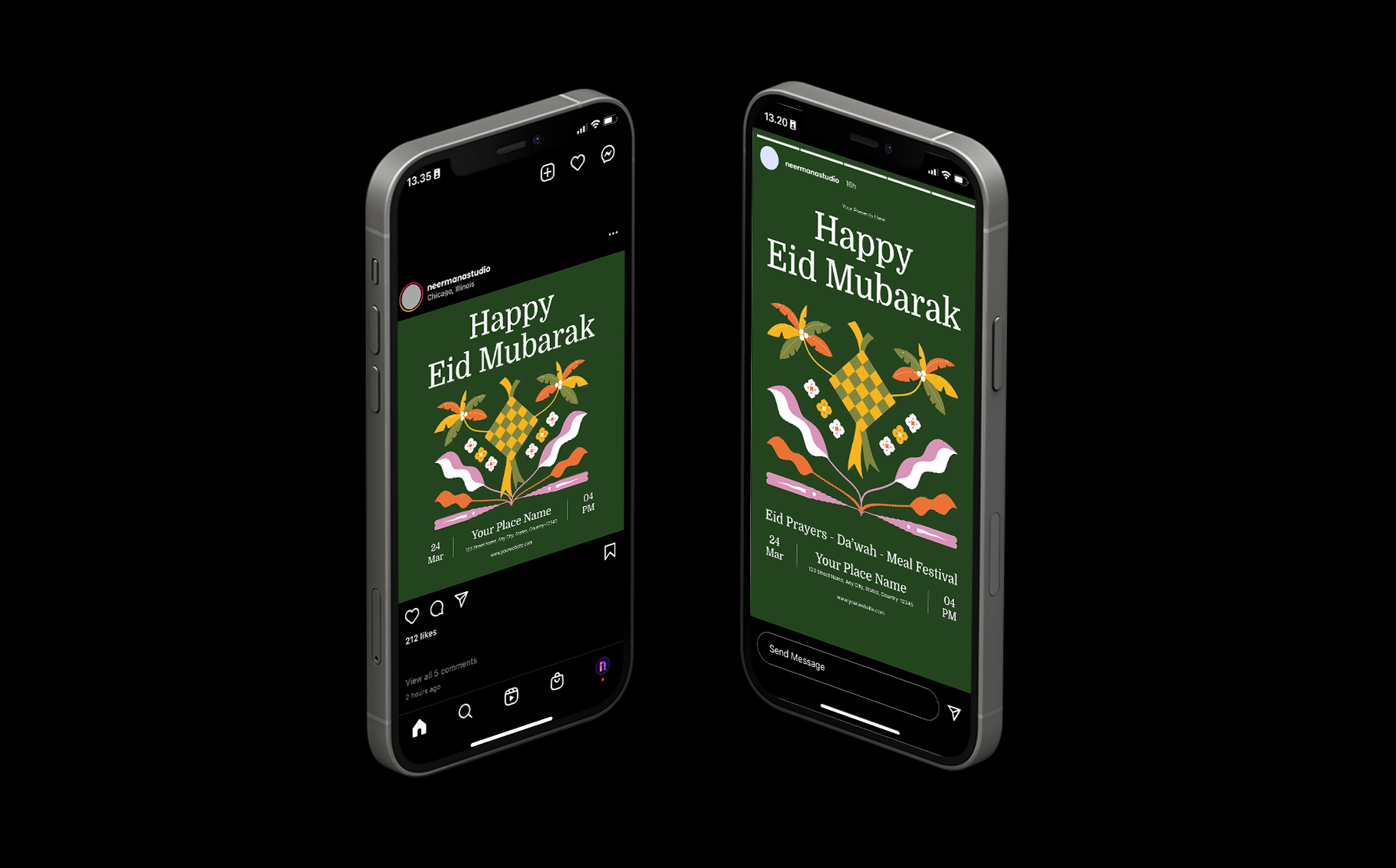 - 1080 x 1080 px (Instagram Post) & 1080 x 1920 px (Instagram Story)