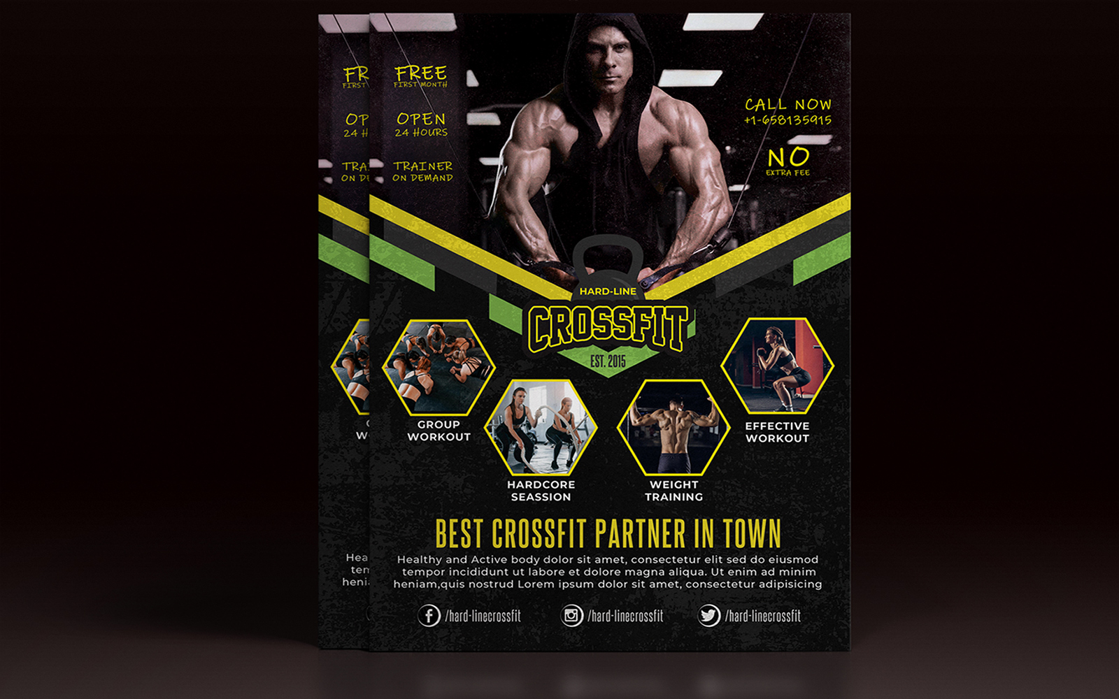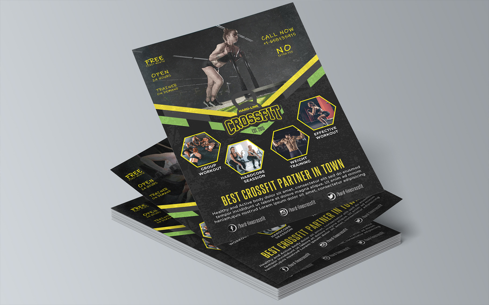 Hard Workout Gym Fitness Crossfit Flyer Design Corporate Identity