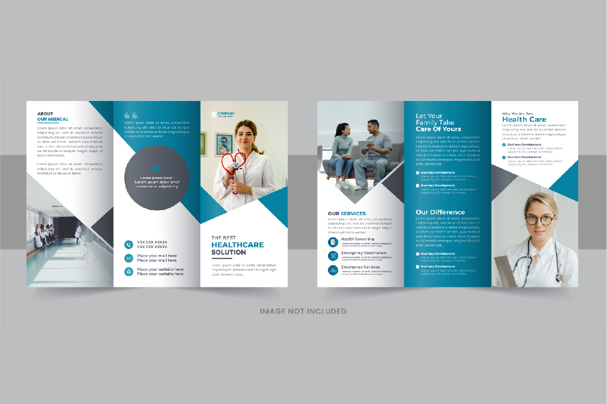 Healthcare or medical center trifold brochure. All type of Corporate business company, agricultural Company, Home Sale, Land Sale or other property selling company could use this Healthcare or medical center trifold brochure
