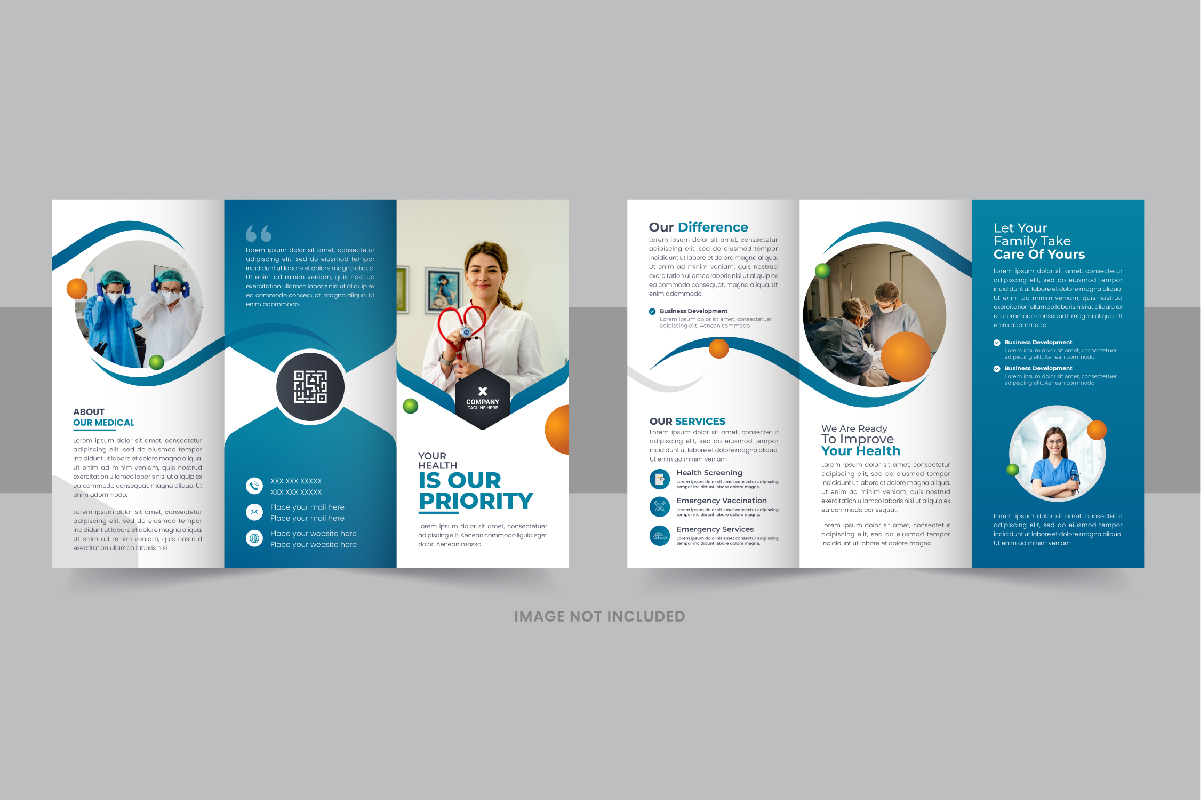 Healthcare or medical service trifold brochure template layout. All type of Corporate business company, agricultural Company, Home Sale, Land Sale or other property selling company could use this Healthcare or medical service trifold brochure template layout