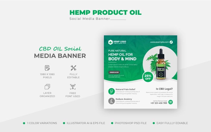 Hemp Cannabis CBD Oil Hemp Product Sale Promotion Social Media Post Banner Corporate Identity