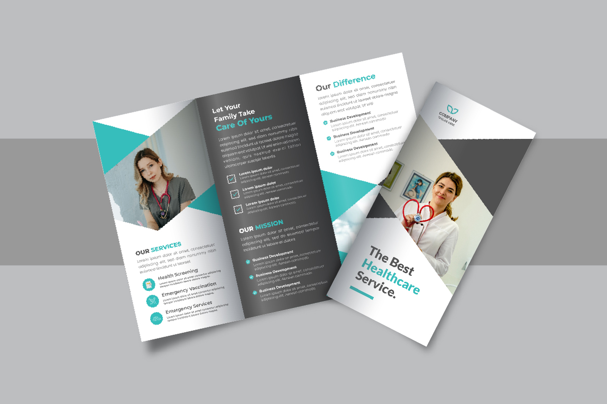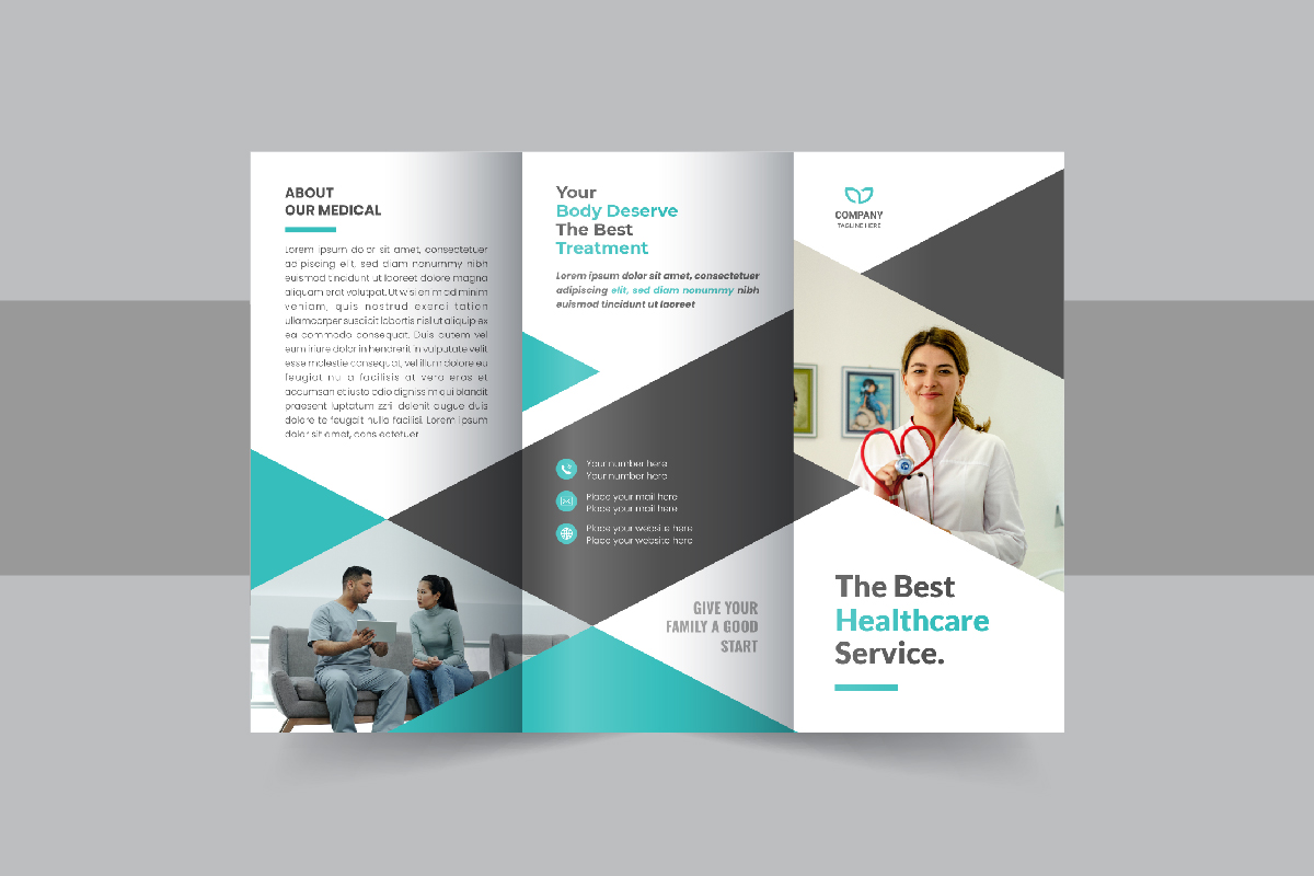 Hospital medical or healthcare trifold brochure, Business or company trifold brochure Corporate Identity