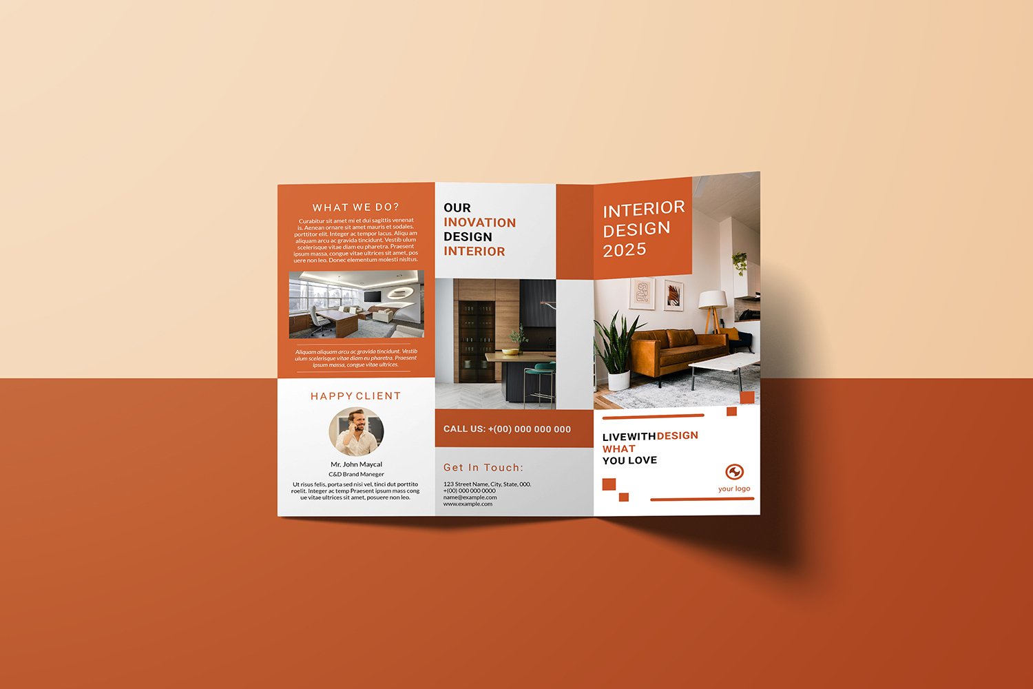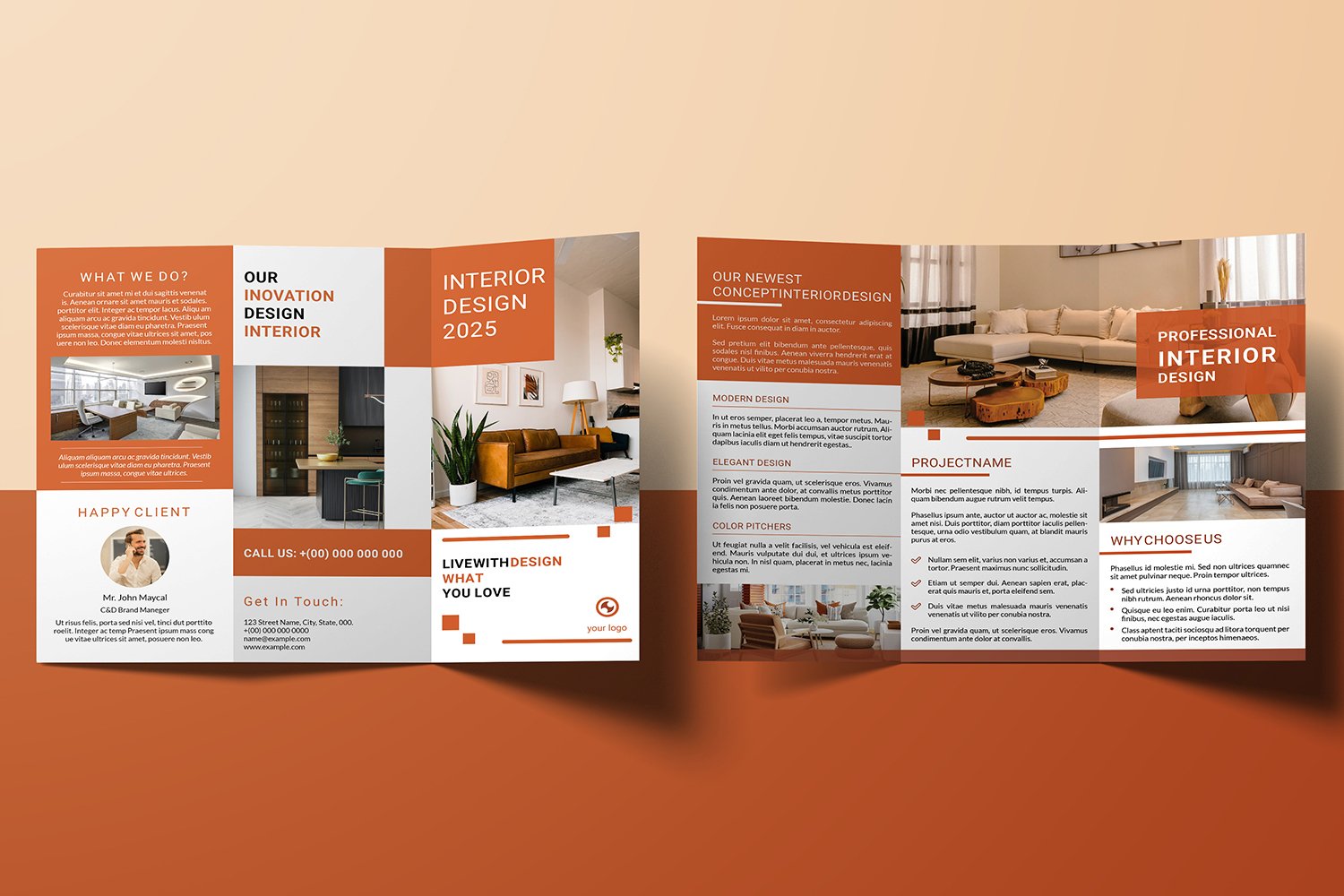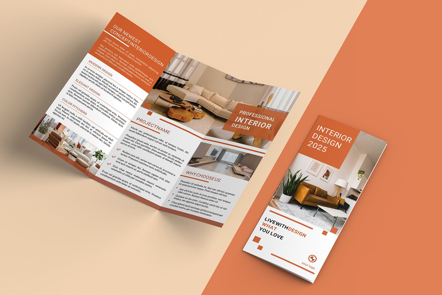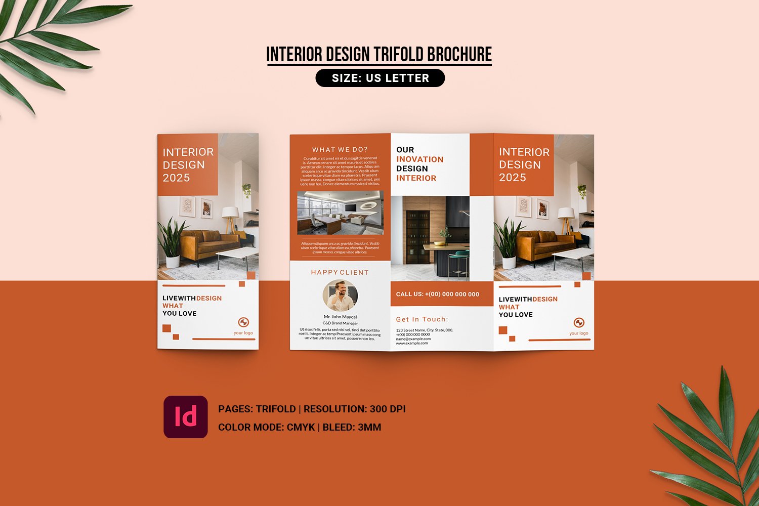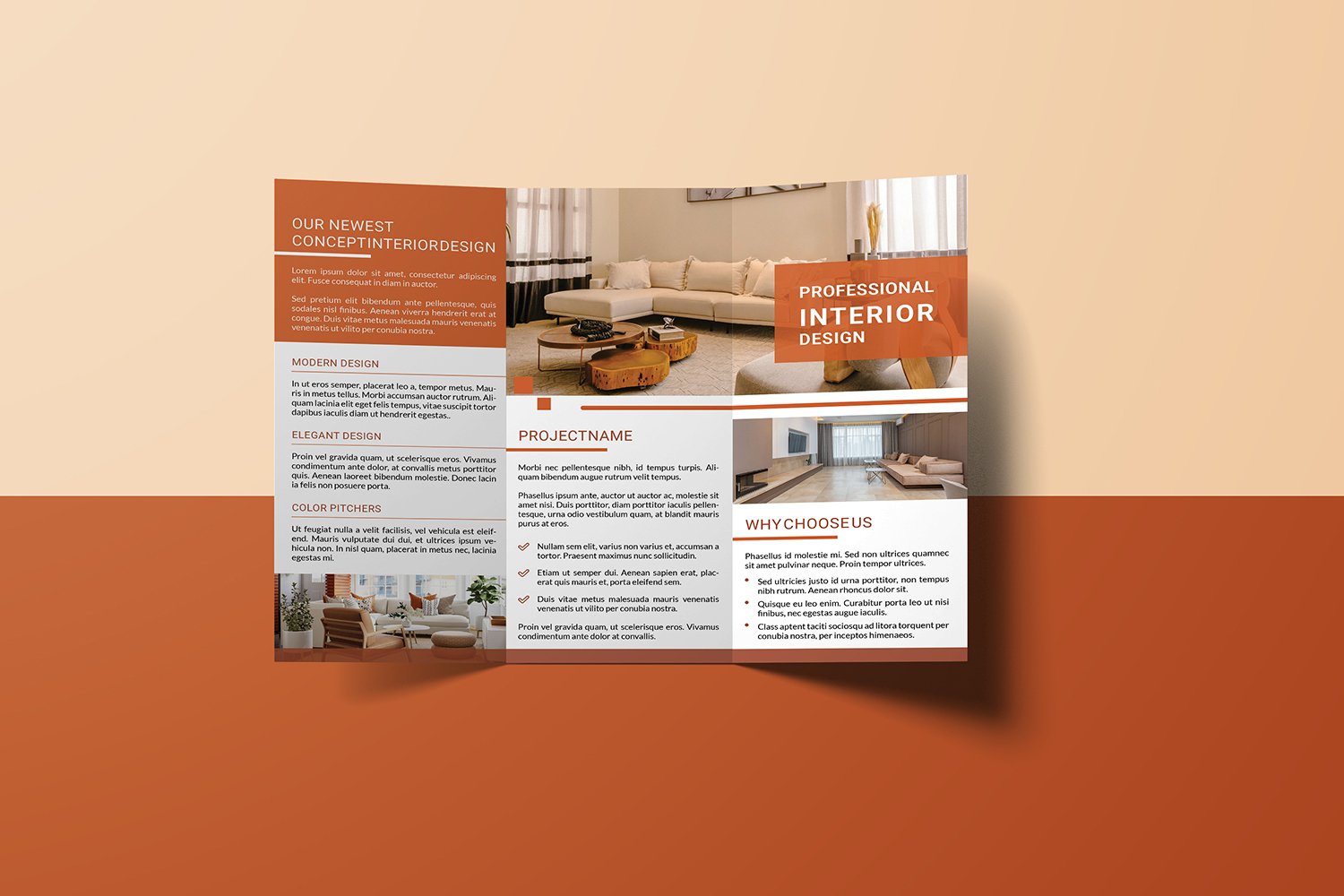 Interior Design Trifold Brochure Template. Indesign Corporate Identity