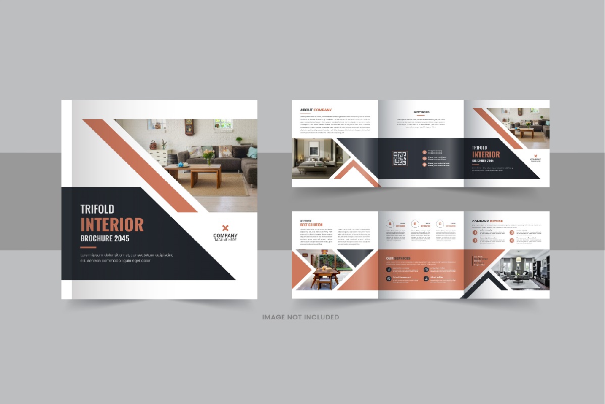 Interior square trifold, Interior magazine or interior portfolio. All type of Corporate business company, agricultural Company, Home Sale, Land Sale or other property selling company could use this Interior square trifold, Interior magazine or interior portfolio