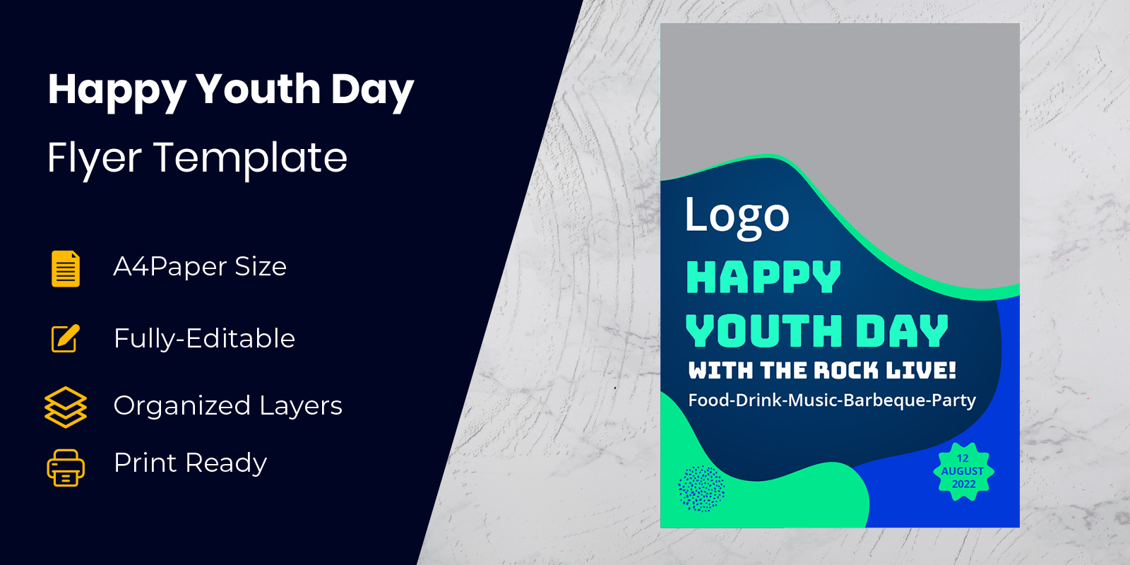 Happy Youth Day Modern Party Flyer, Brochure, Greeting Card Illustration.