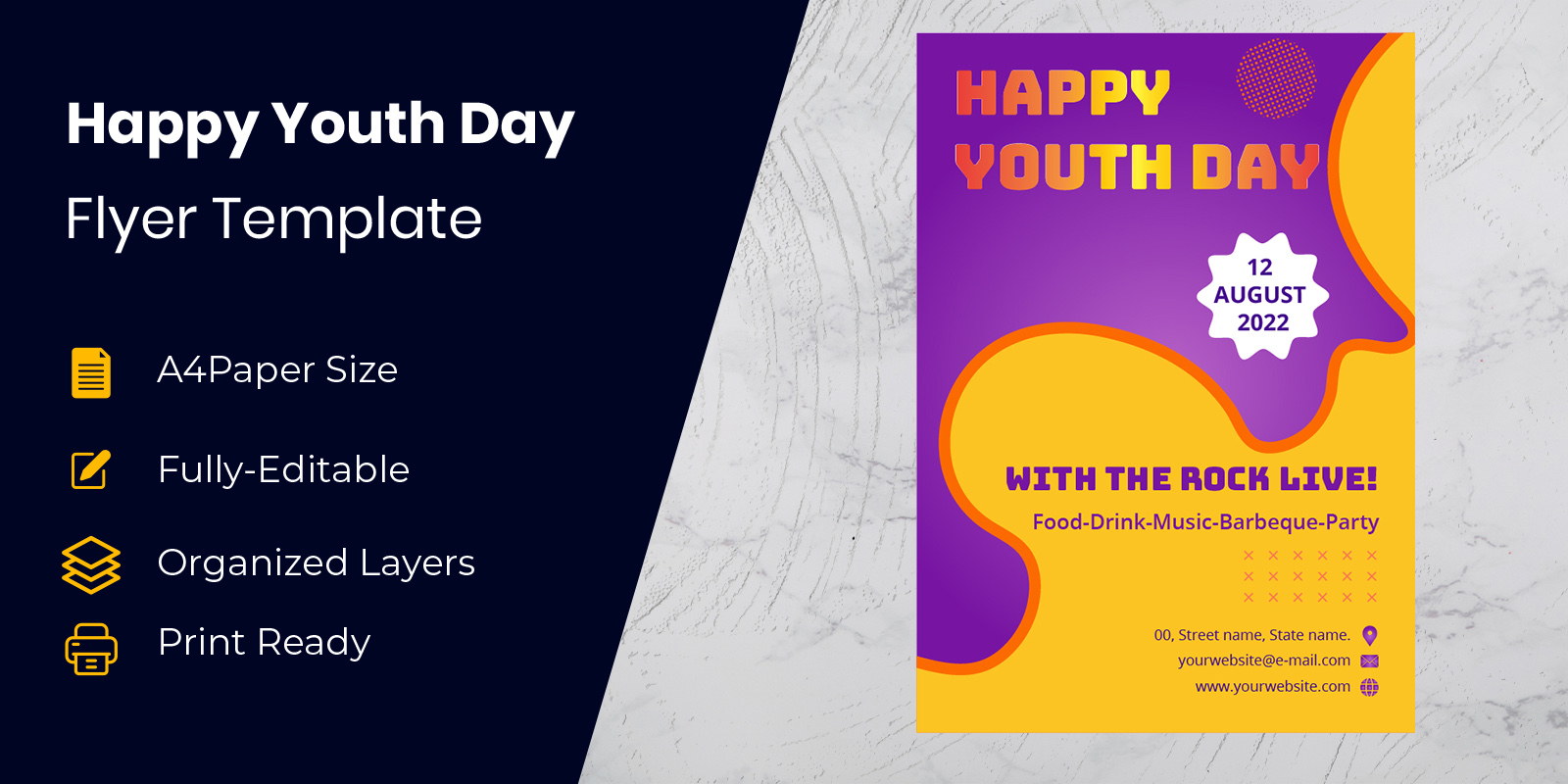 Happy Youth Day Modern Party Flyer, Brochure, Greeting Card Illustration.