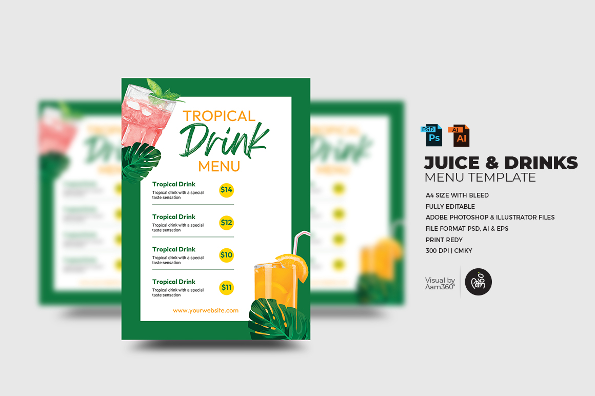 Juice & Drinks Menu Flyer Template. Corporate Identity