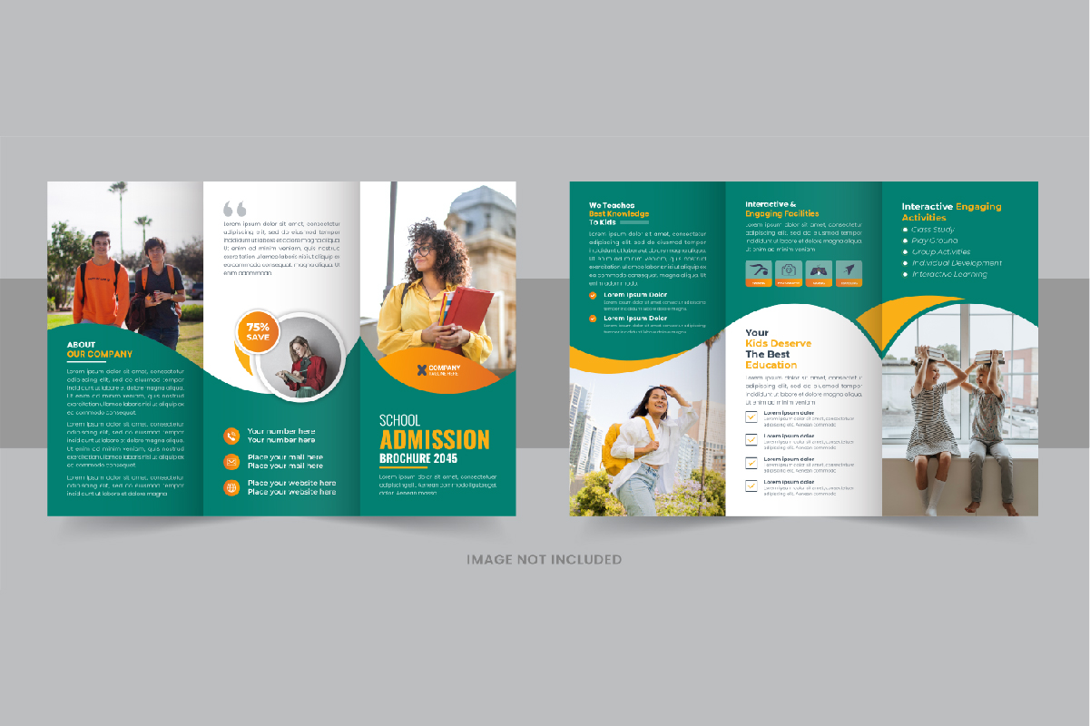 Kids back to school admission or Education trifold brochure design template. All type of Corporate business company, agricultural Company, Home Sale, Land Sale or other property selling company could use this Kids back to school admission or Education trifold brochure design template