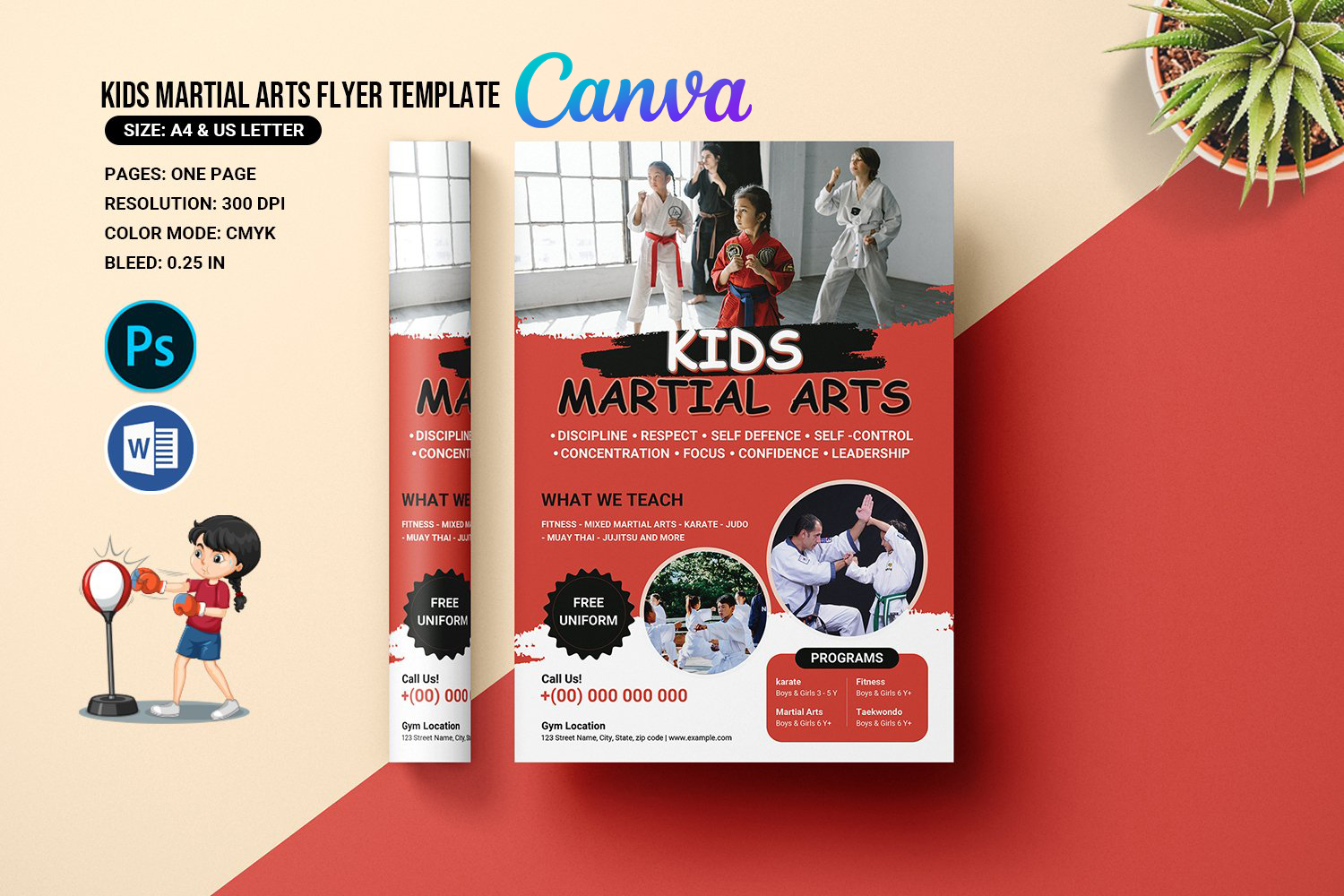 Kids Martial Arts Flyer Template. MS Word , Photoshop & Canva Corporate Identity