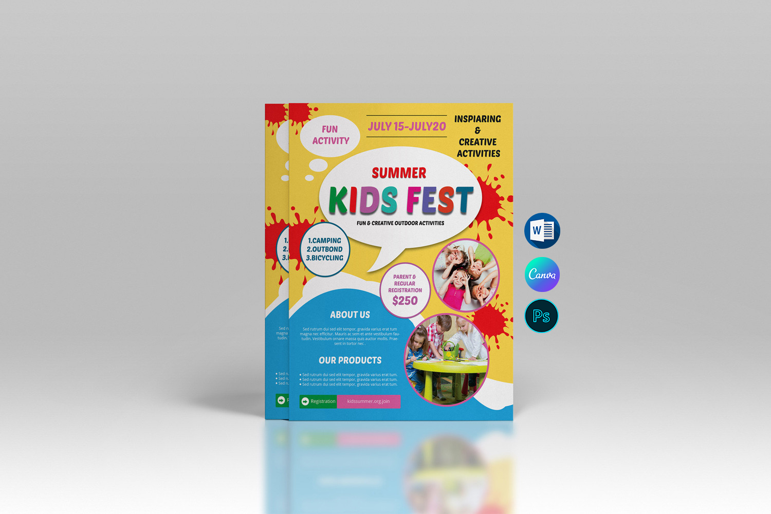 Printable Kids Summer Camp Flyer template Corporate Identity