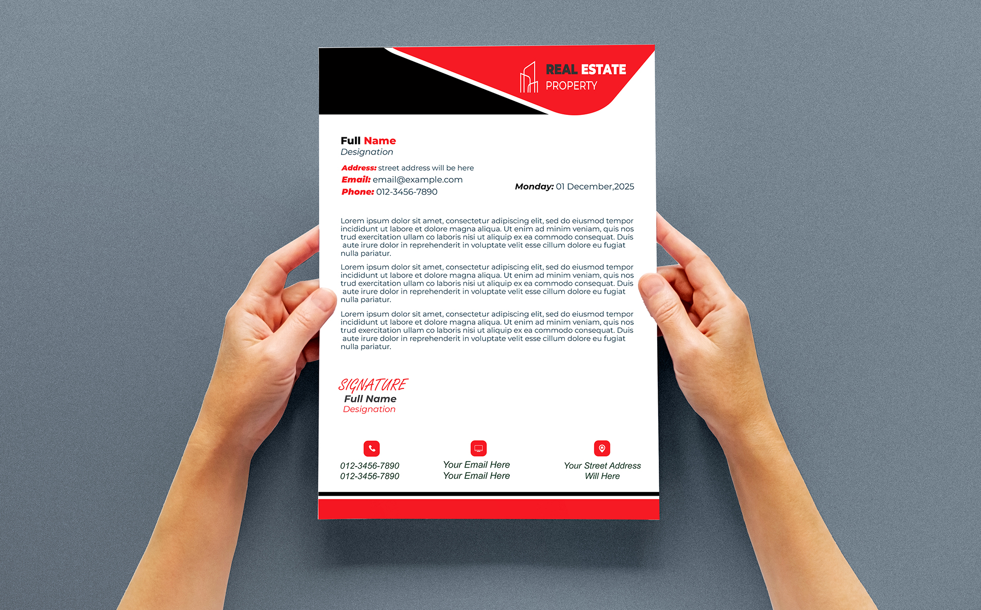 A timeless black and white letterhead design for those who value elegance and professionalism. Ideal for law firms, consultants, and formal businesses.