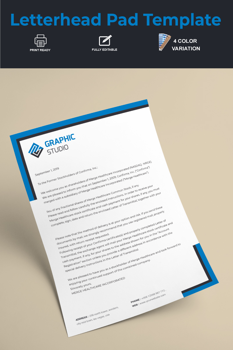 This premium Letterhead Pad template AI versions. This template is 100% customizable and ready to print. A help file is included with the main file. It is designed for personal and corporate use
