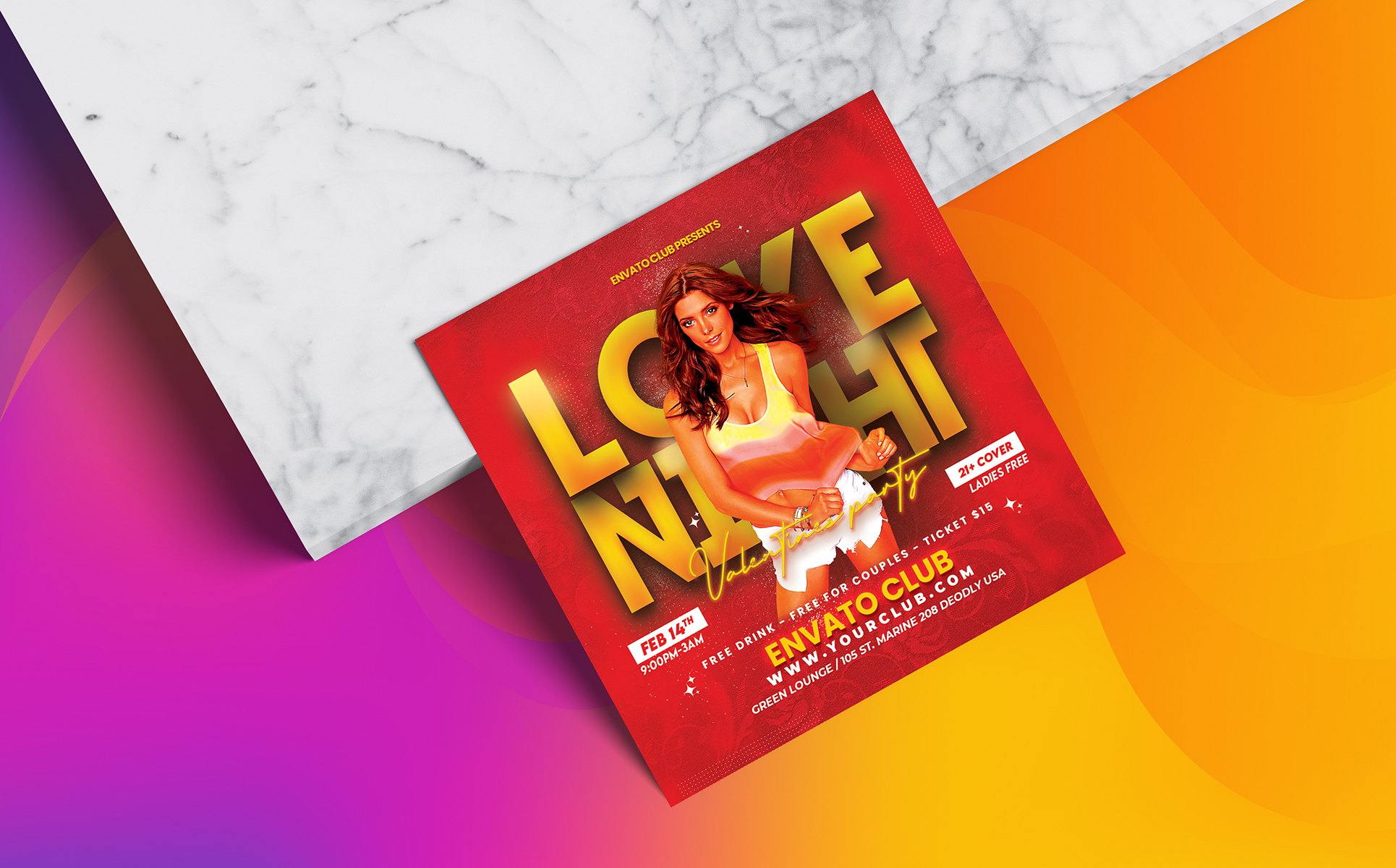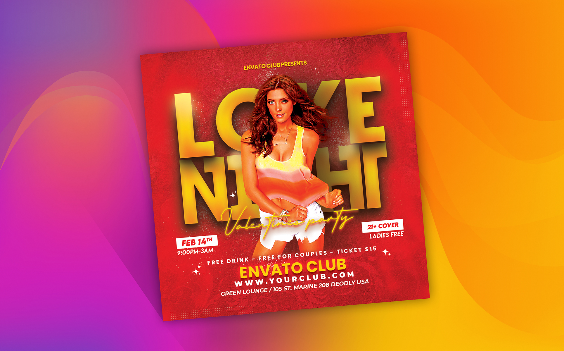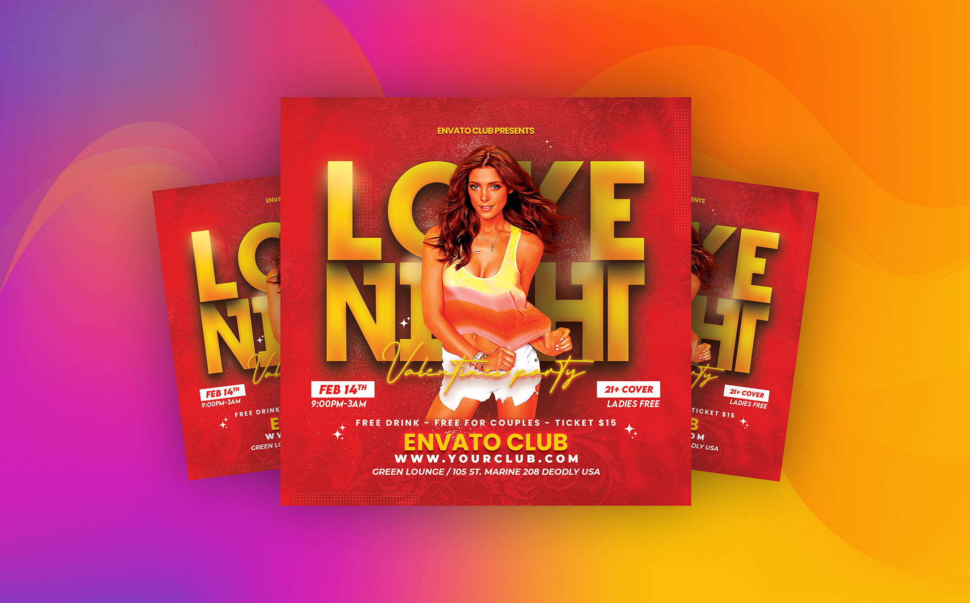 Valentine Party Flyer Template PSD. Fully customizable party flyer template for Photoshop. Easy to use and fully customizable. Buy this template now and start using it. Shorten your working time.