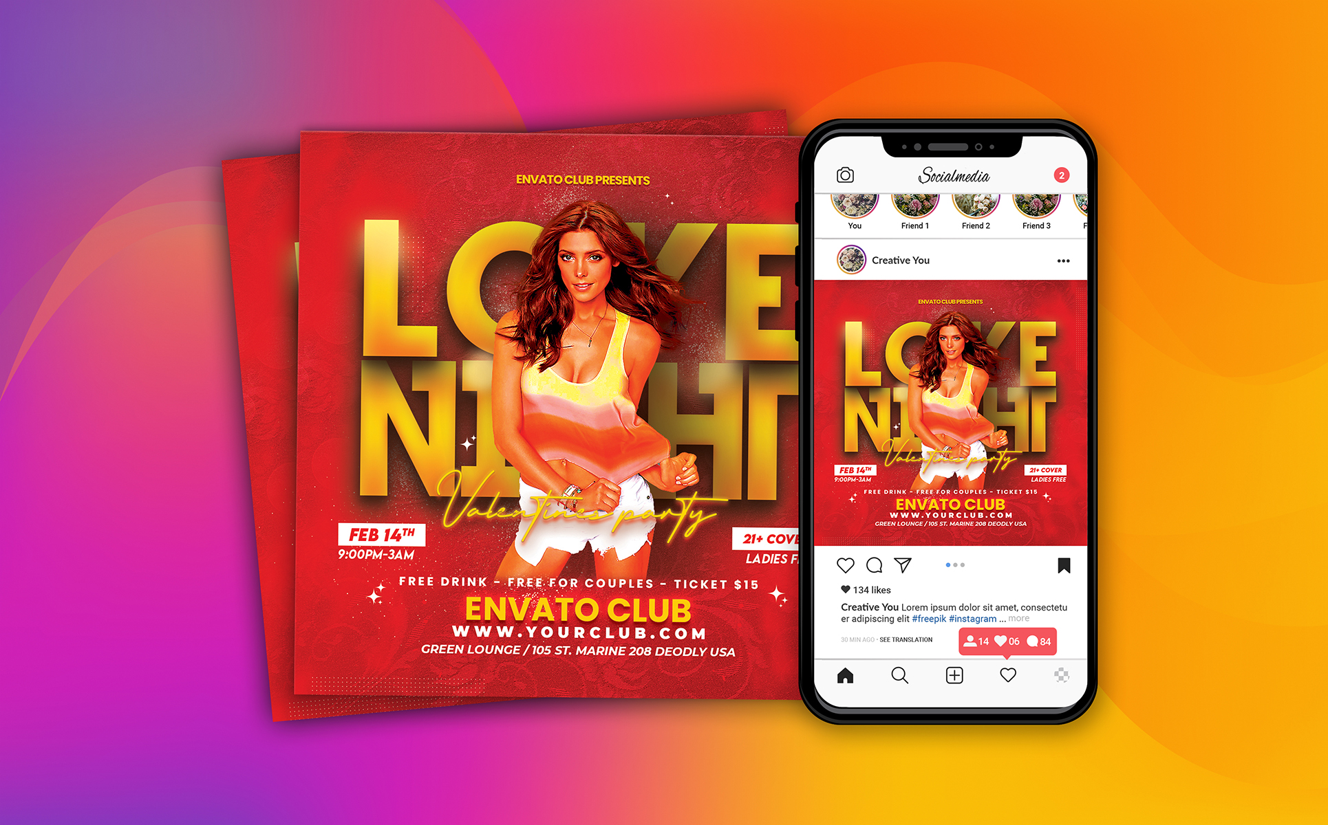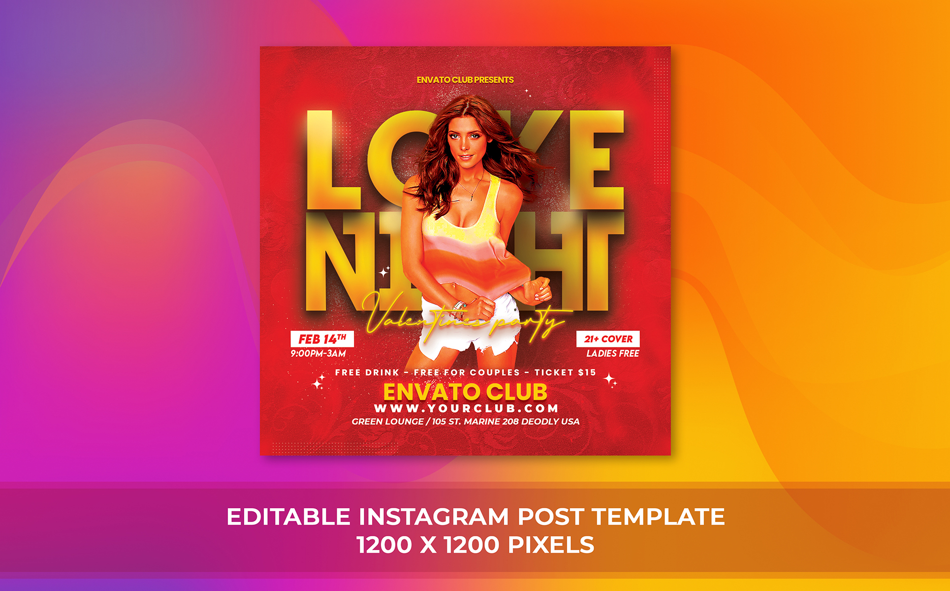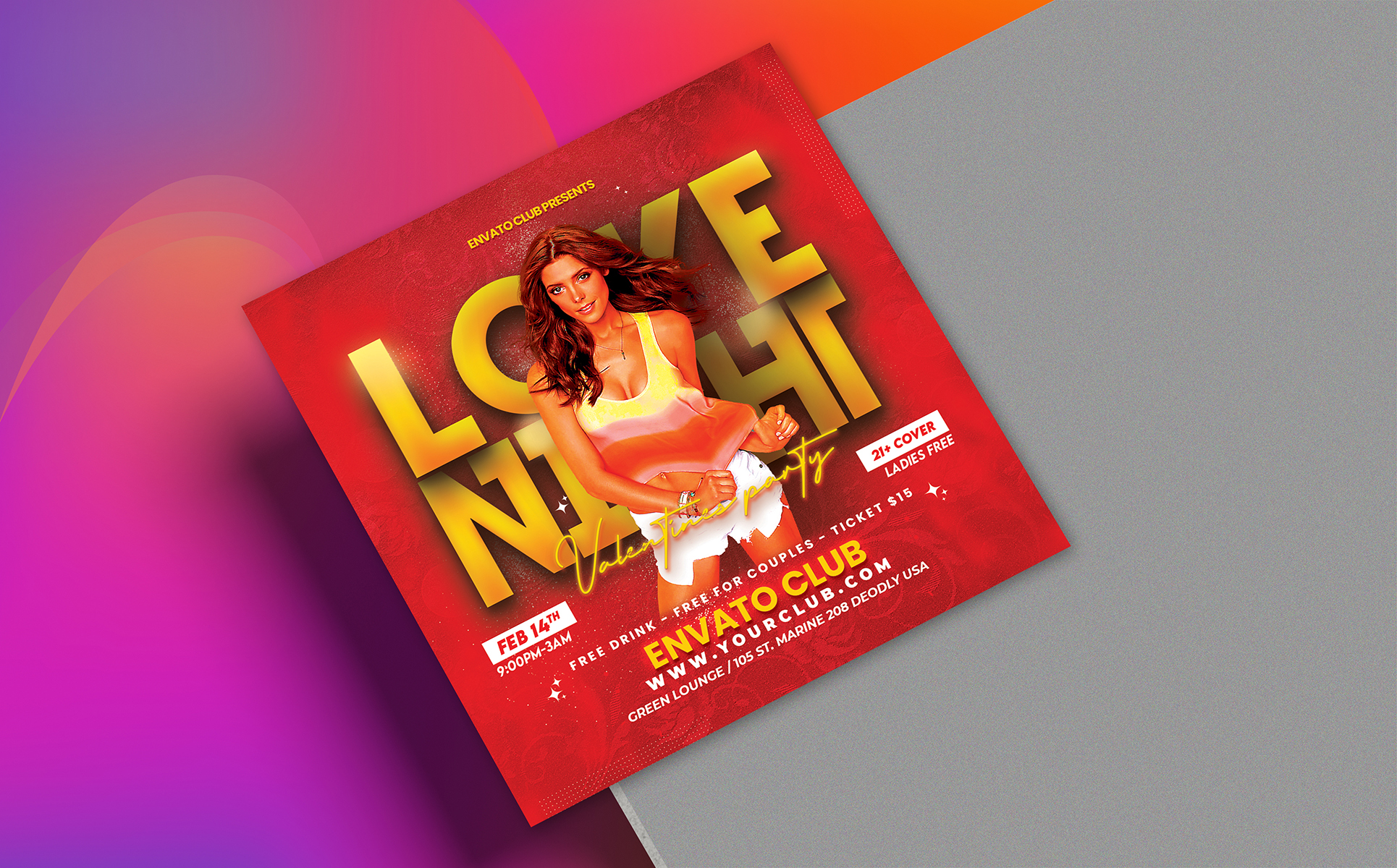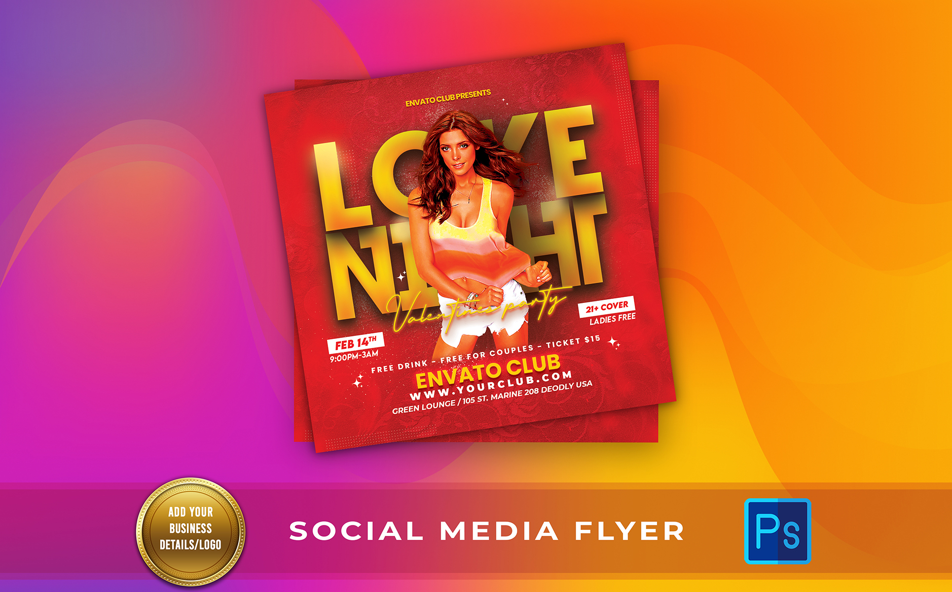 Valentine Party Flyer Template PSD. Fully customizable party flyer template for Photoshop. Easy to use and fully customizable. Buy this template now and start using it. Shorten your working time.