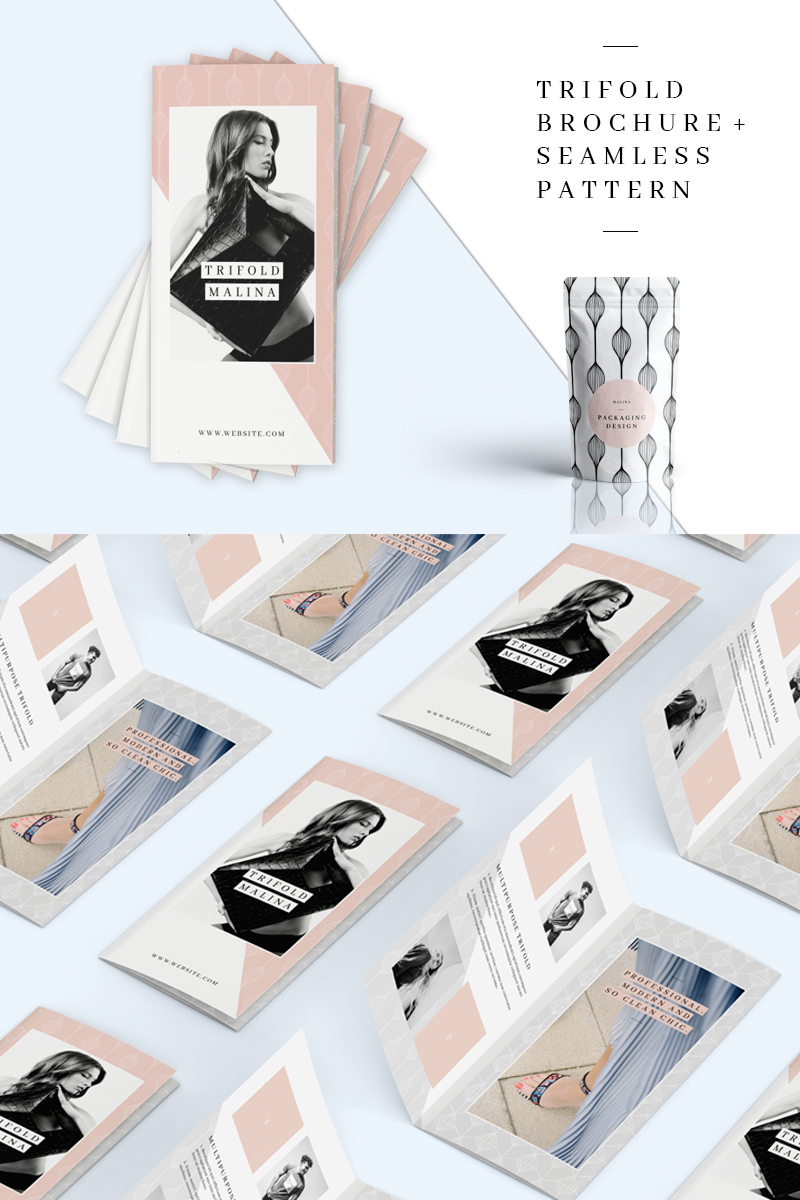 MALINA Trifold Brochure + Pattern - Corporate Identity Template