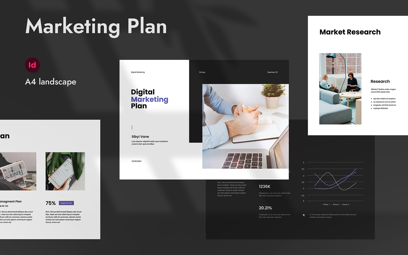 **Minimal Design/ Marketing Plan Brochure Landscape Template** Need to create a Marketing Plan Template document for your client?