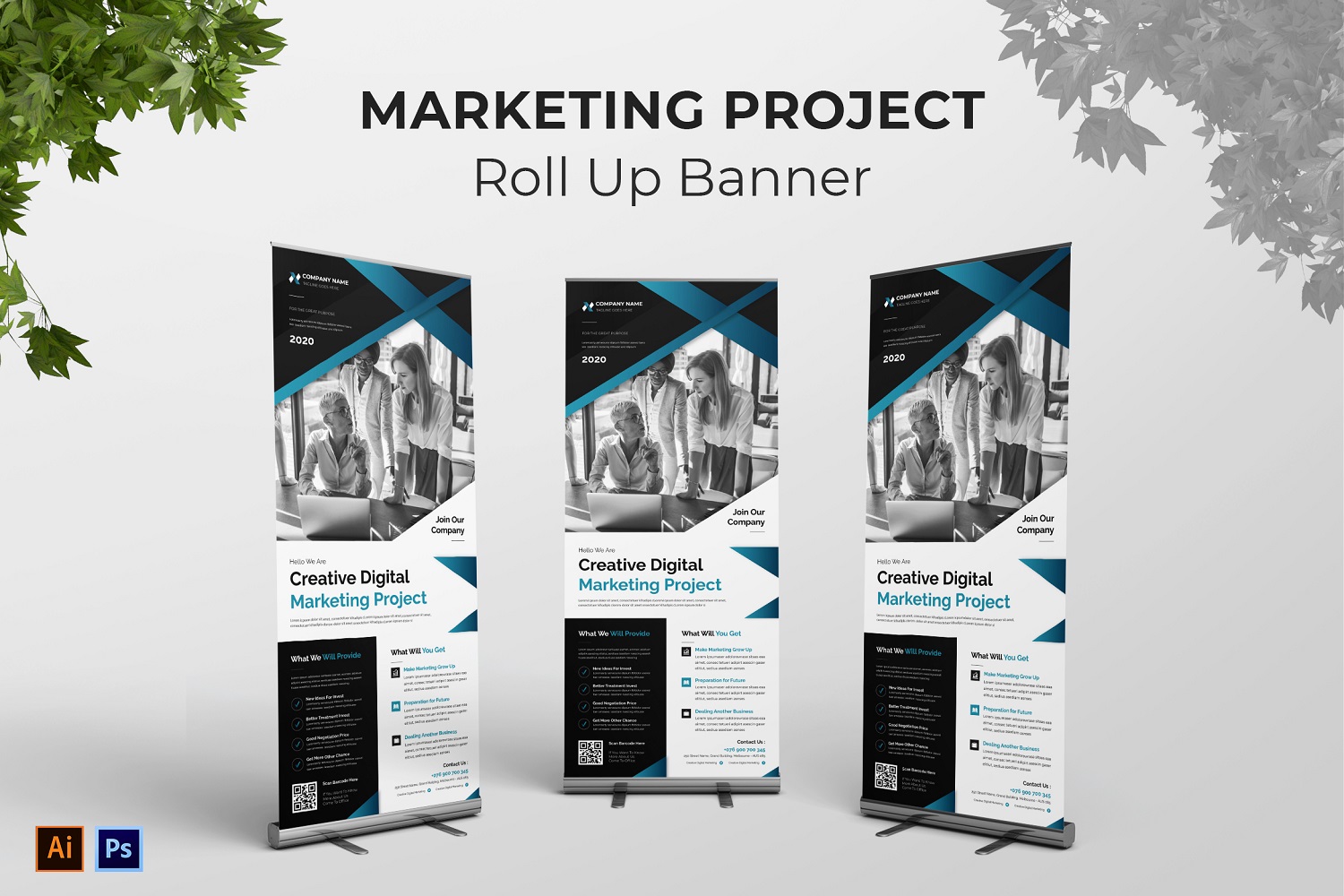 This Roll Up Banner template has fully editable and customizable PSD and AI files. This Roll Up Banner template also has creative style, and it's suitable for your any purpose such as: businesses, corporate, agency and can be also used for any other publishing like marketing promotions and company profile.