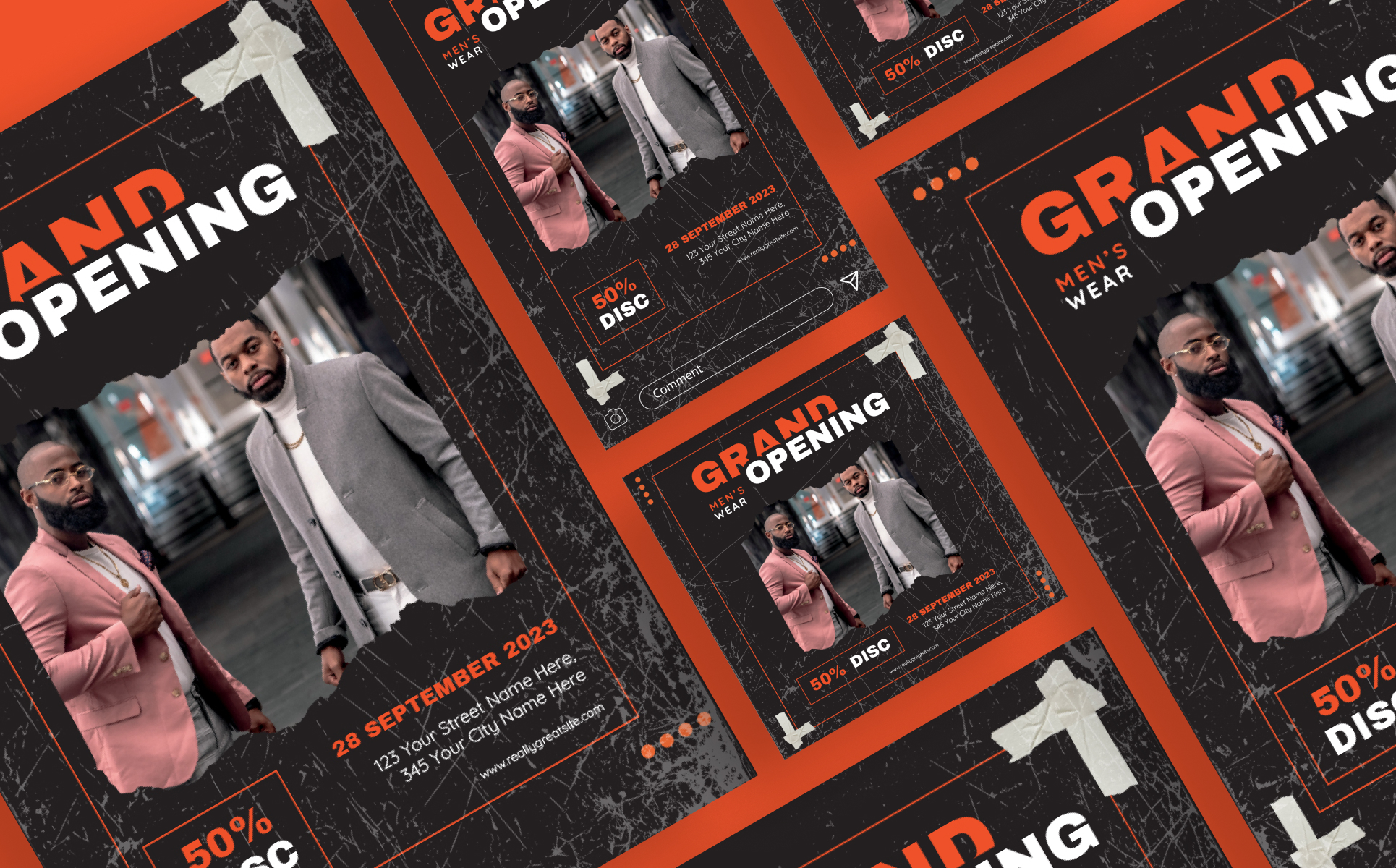 Mens Wear Grand Opening Flyer Template Corporate Identity