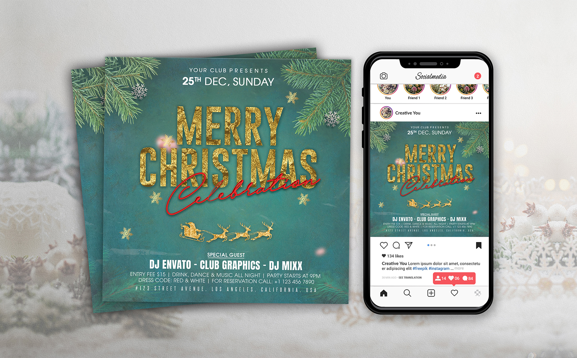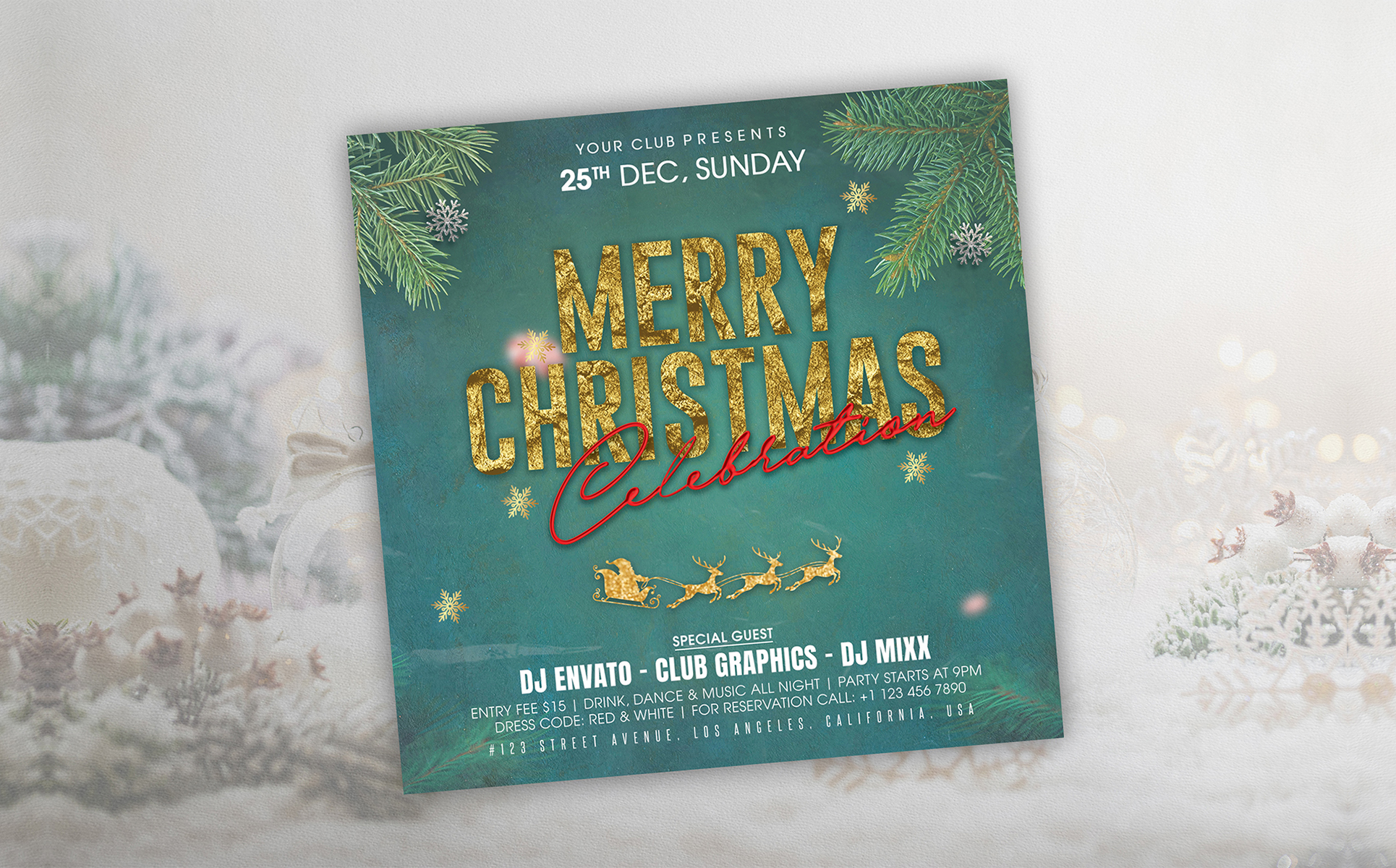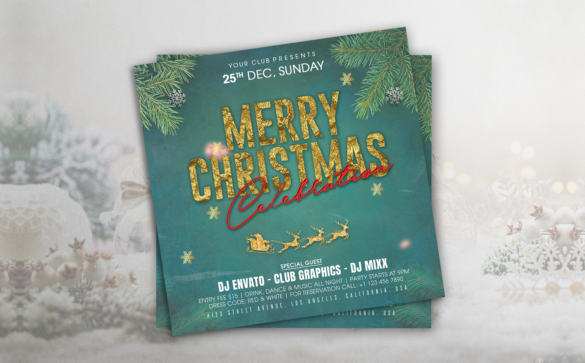 Christmas Party Flyer Template PSD. Fully customizable party flyer template for Photoshop. Easy to use and fully customizable. Buy this template now and start using it. Shorten your working time.