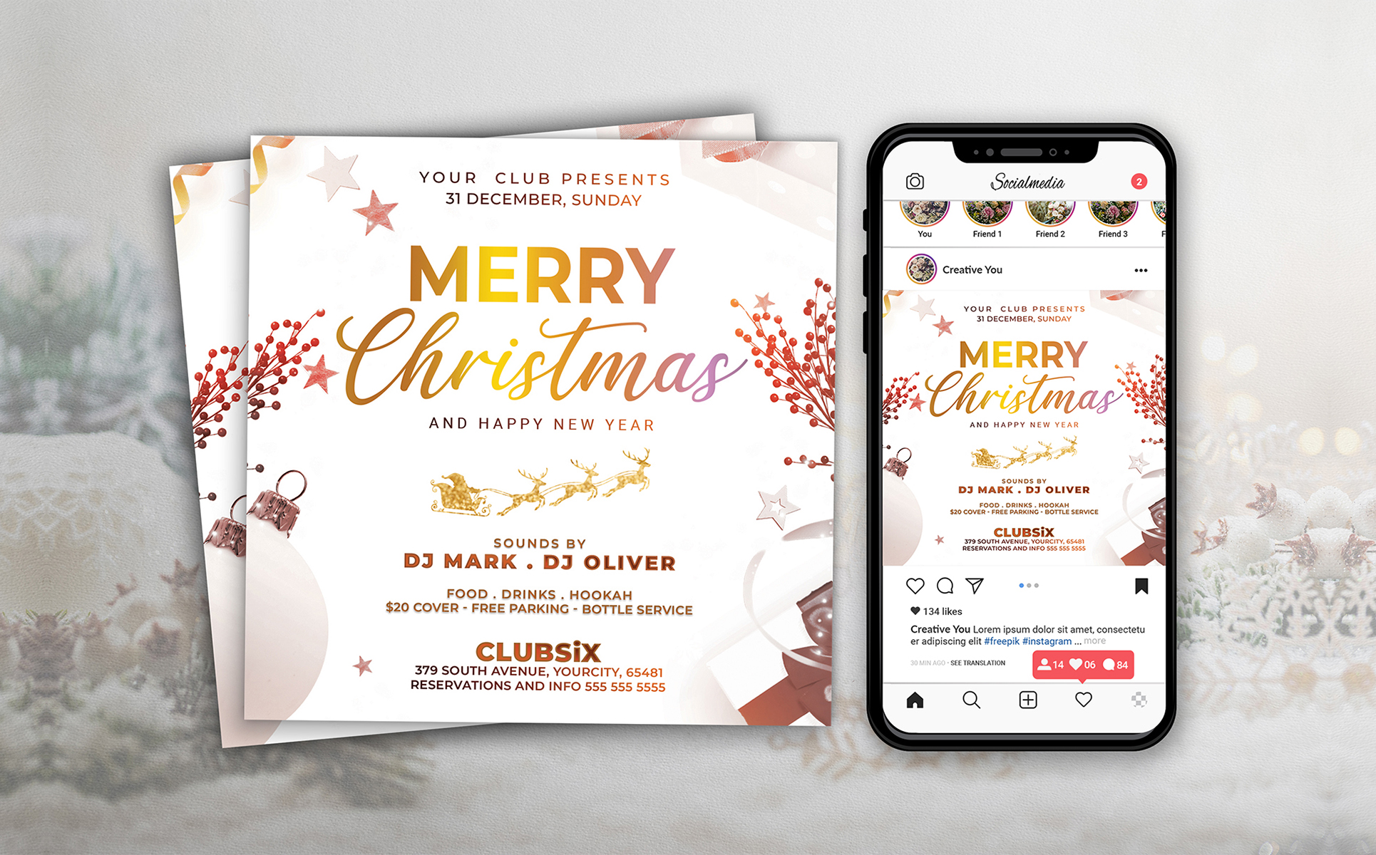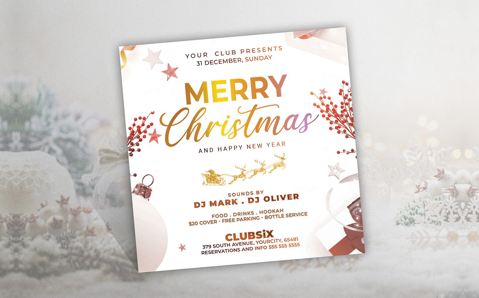 Christmas Party Flyer Template PSD. Fully customizable party flyer template for Photoshop. Easy to use and fully customizable. Buy this template now and start using it. Shorten your working time.