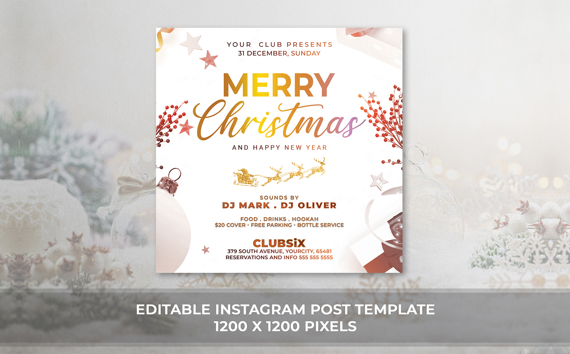 Christmas Party Flyer Template is a very modern PSD flyer that will be the perfect invitation for your Christmas event or Club party! All elements are in individual layers and the text is fully editable!