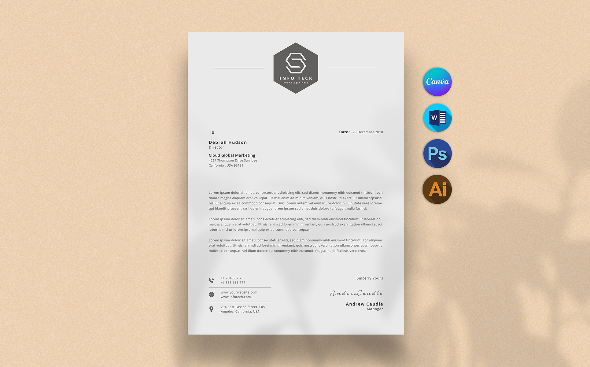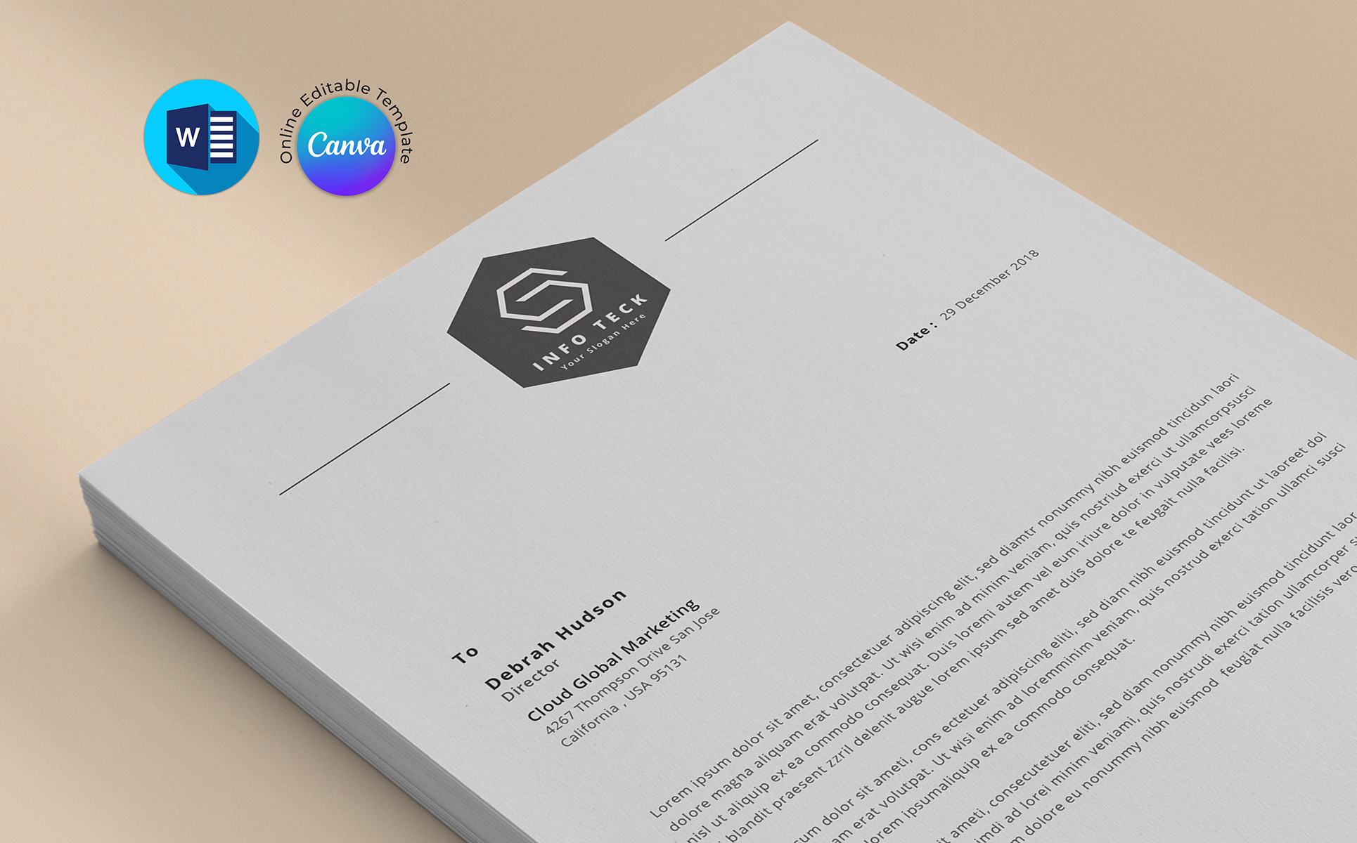 - A professionally designed letterhead template.