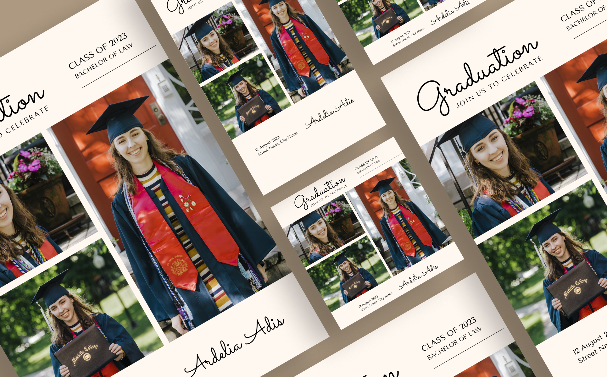 Milky Triple Photo Graduation Party Invitation Flyer Template Corporate Identity