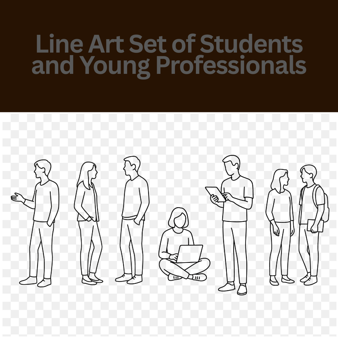 Minimalist Line Art Set of Students and Young Professionals Talking, Studying, and Using Technology Corporate Identity