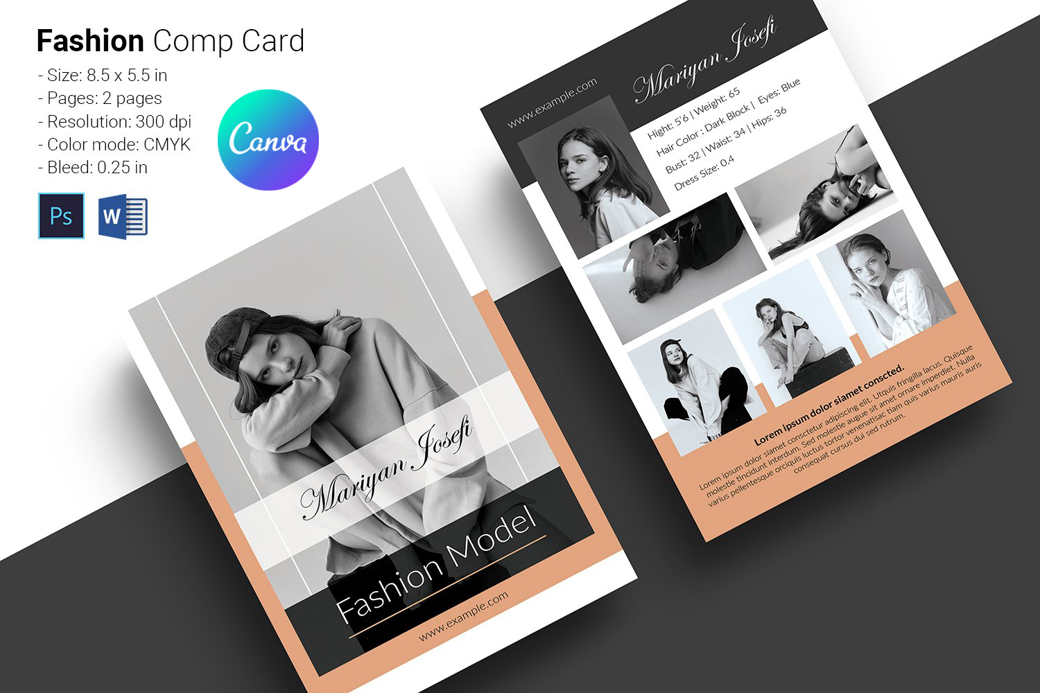 Model Comp Card Template. Word, Canva & Psd Corporate Identity
