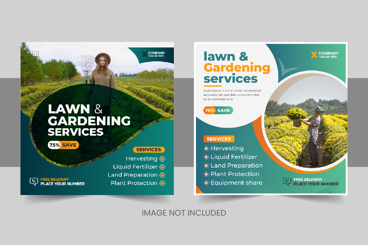 Modern agriculture farming services social media post or lawn care banner design Layout Corporate Identity