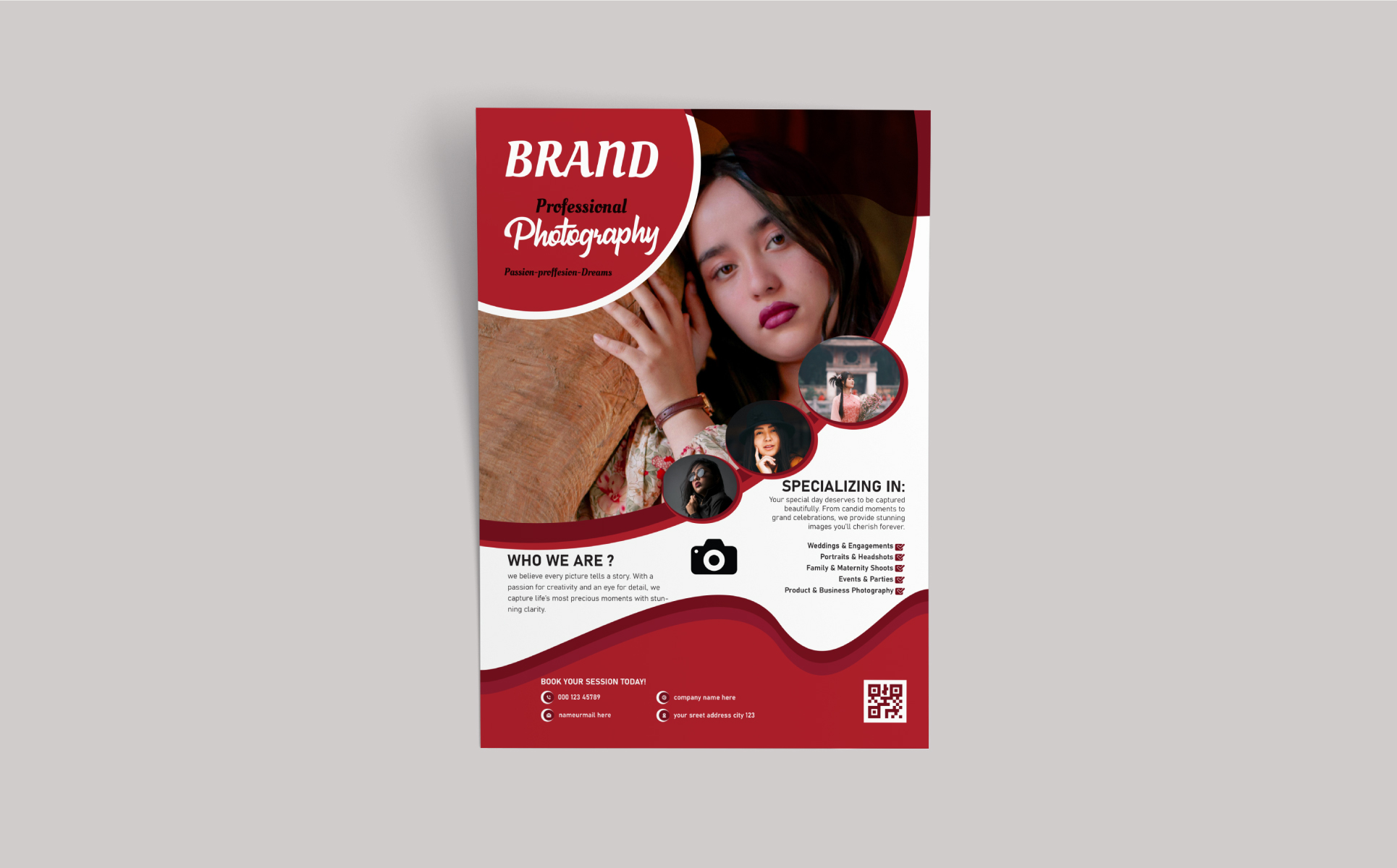 This is a creative Clean and Professional photography flyer template for your personal or company or wedding or any events . Just drop in your own pictures and texts, and it’s ready for print Perfect for any kind of business, webinar, education, marketing promotion, digital marketing, marketing agency, etc.