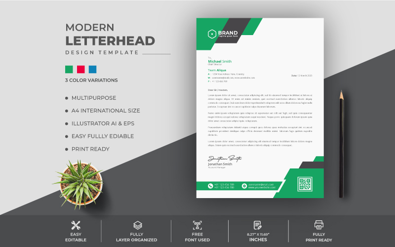 This is a clean eye-catchy professional Letterhead Template suitable for all businesses. Easy to edit, all you need to know the very basic of Illustrator to change the text and Its print ready!!! for promoting your Corporate Business. Most of the design is based on the shape so you can scale it to any size. Easy to edit, all you need to know the very basics of Adobe Illustrator to change the text and images then It is print-ready!!