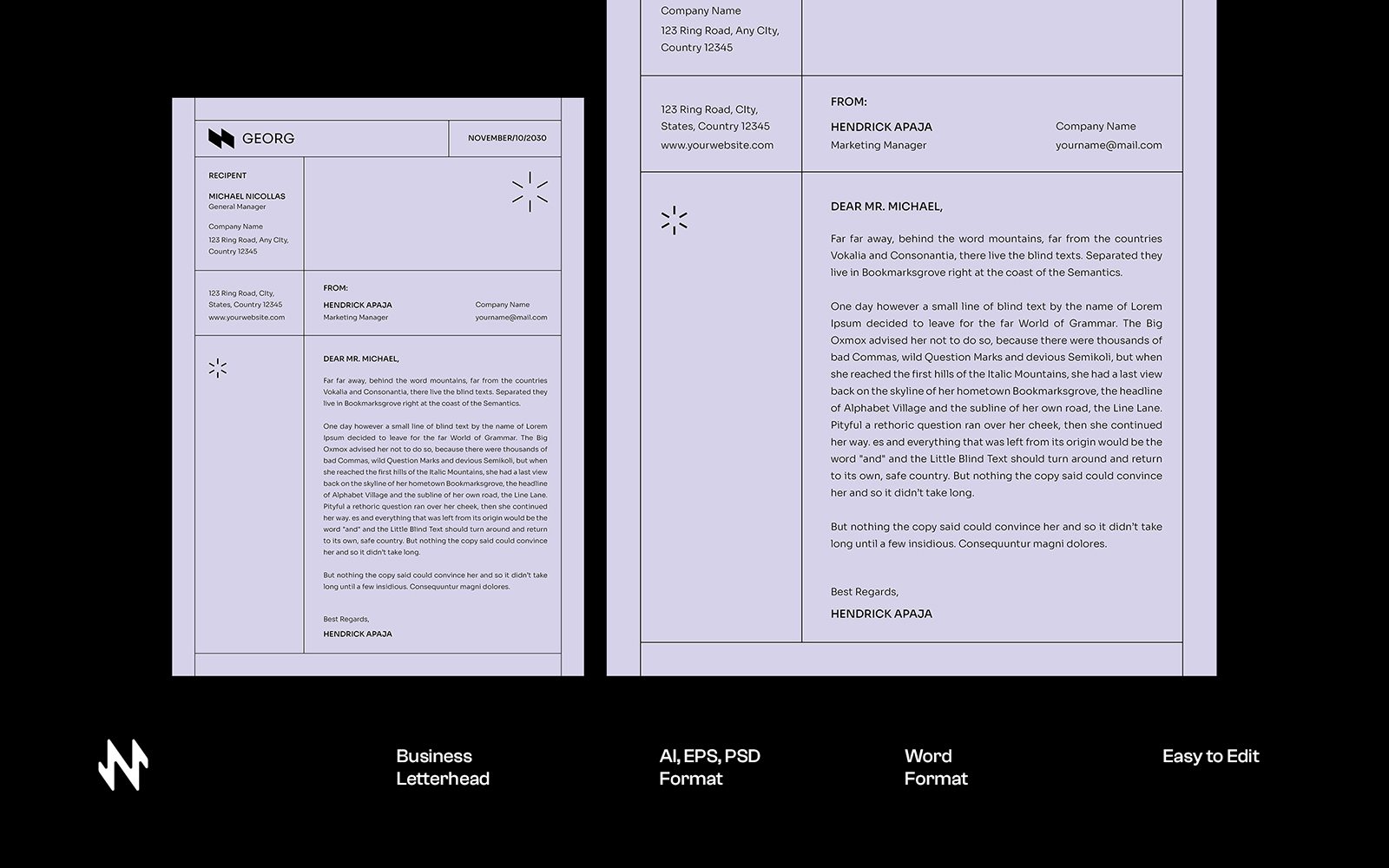 Letterhead design template with clean and professional design including your company contact, address, etc. Suit for any type of companies, for your stationery use.