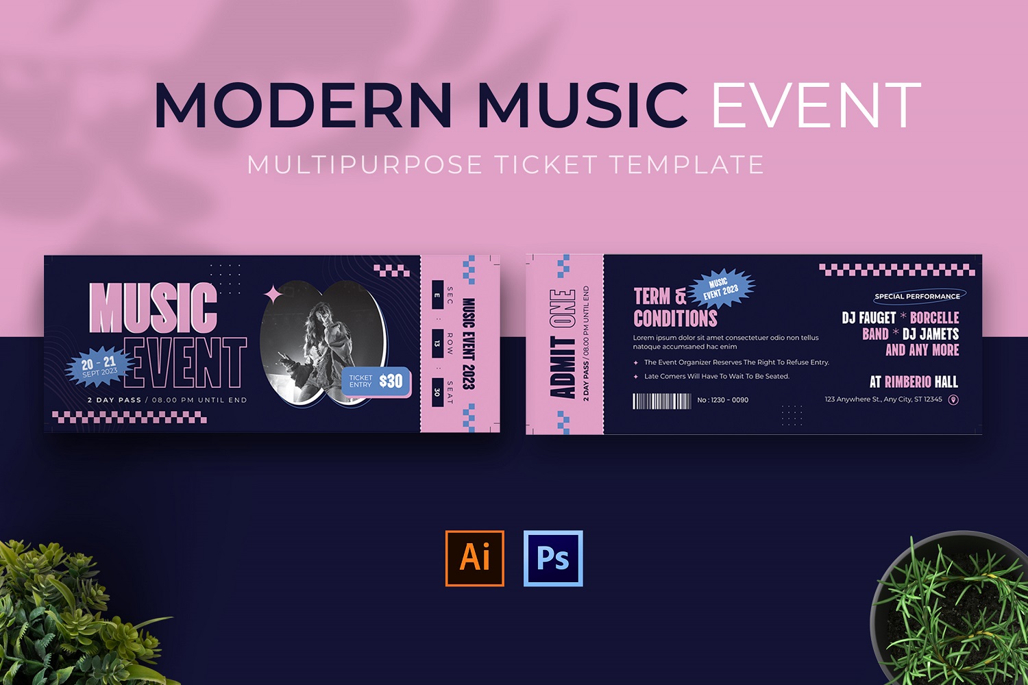 This Ticket template has fully editable and customizable PSD and AI files. This Ticket template also has creative style, and it's suitable for your any purpose.