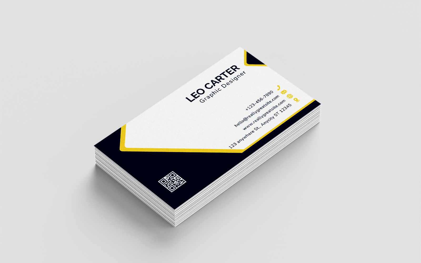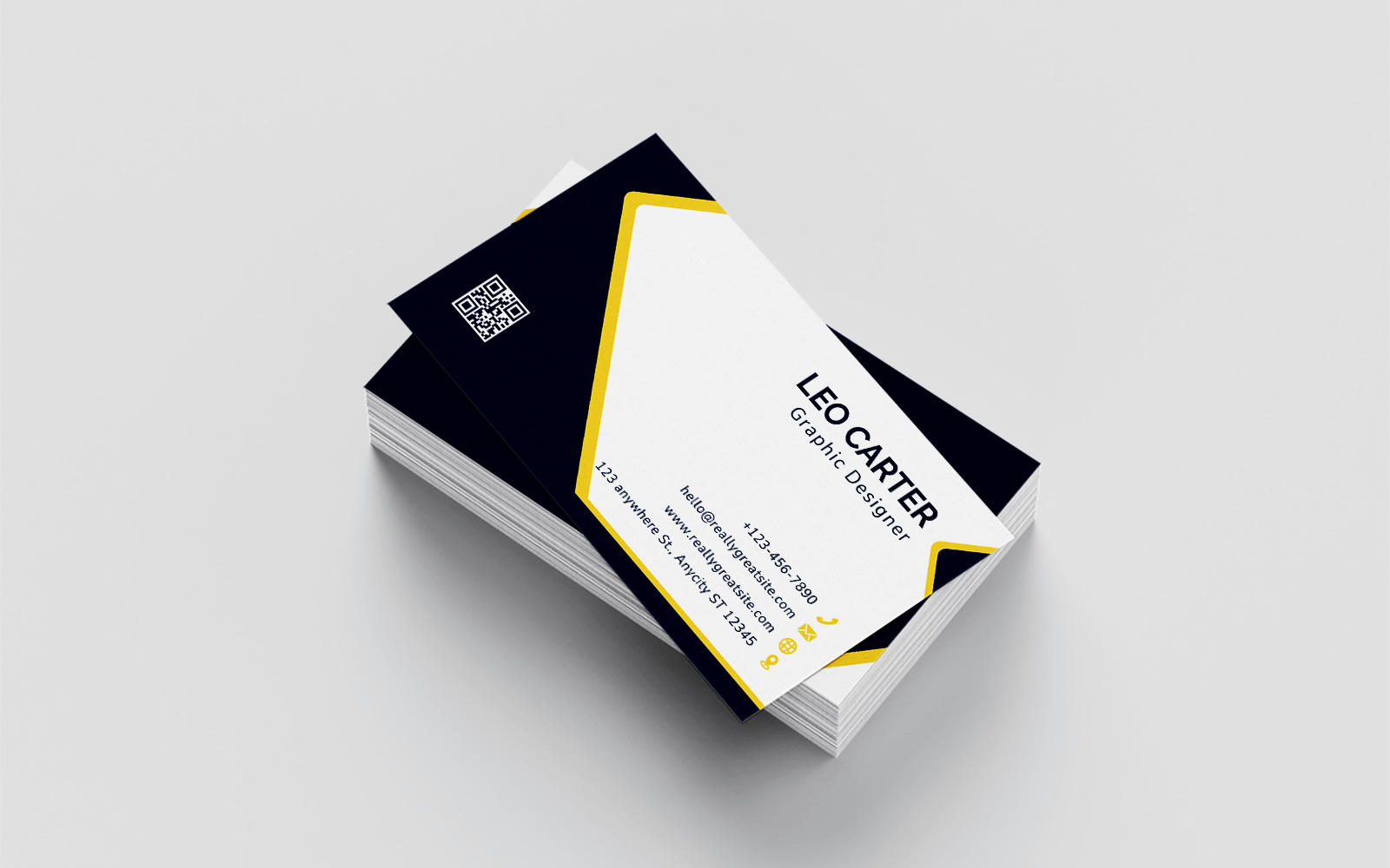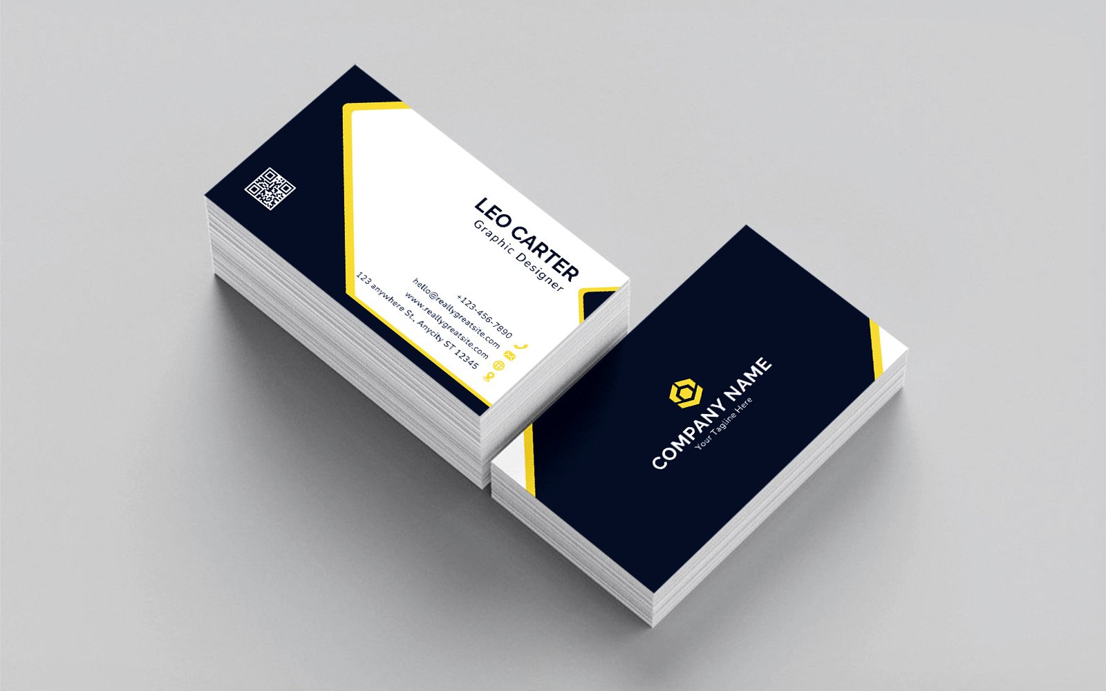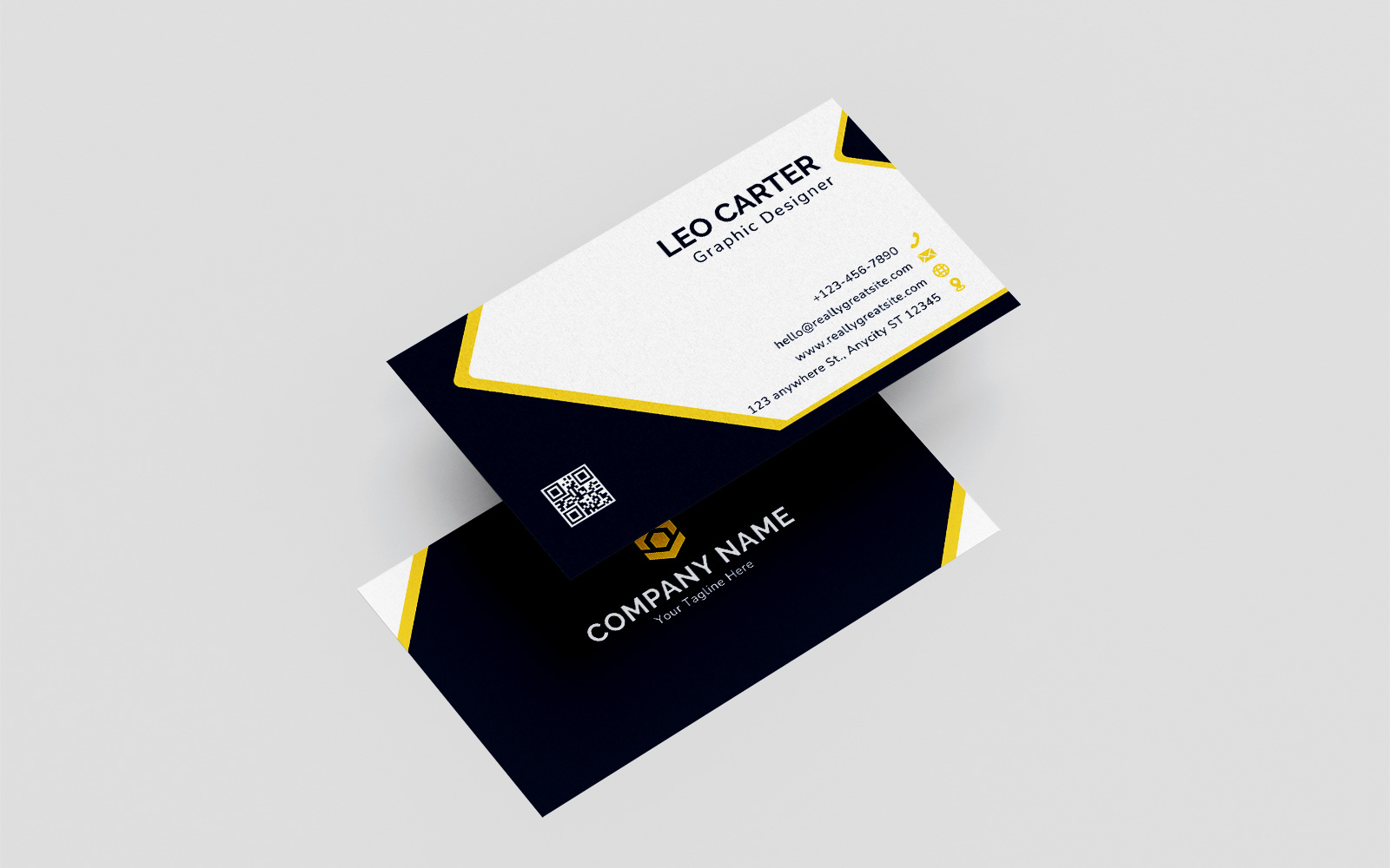 Make a lasting impression with this Modern Professional Business Card Template, featuring a sophisticated blend of navy, white, and gold tones. The geometric accents add a touch of elegance, making it ideal for professionals, agencies, freelancers, and businesses aiming for a polished and contemporary brand identity.