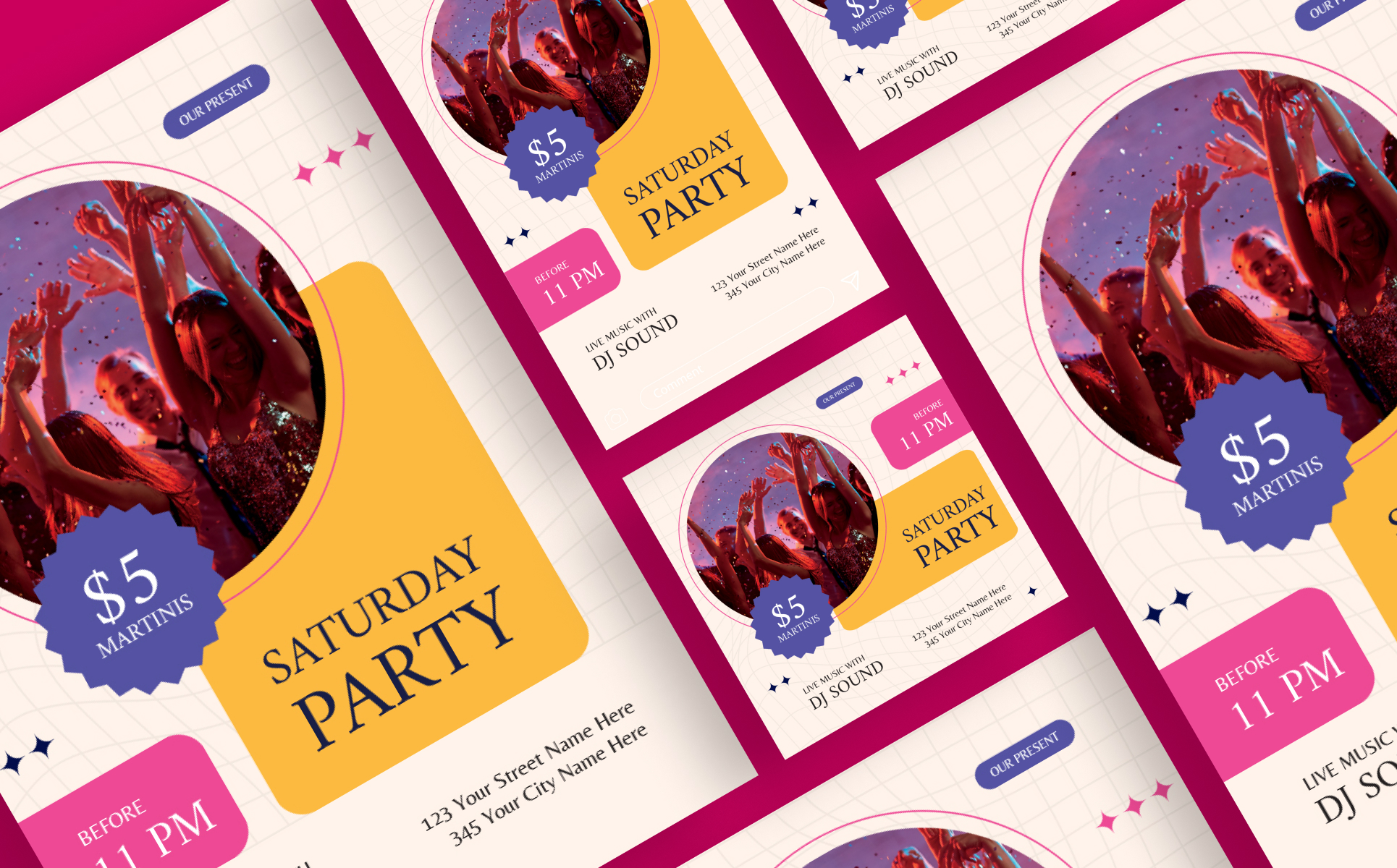 Saturday Party - Single Sided Flyer Template was designed to promote an music party event / celebration party / night party or other advertising purposes.