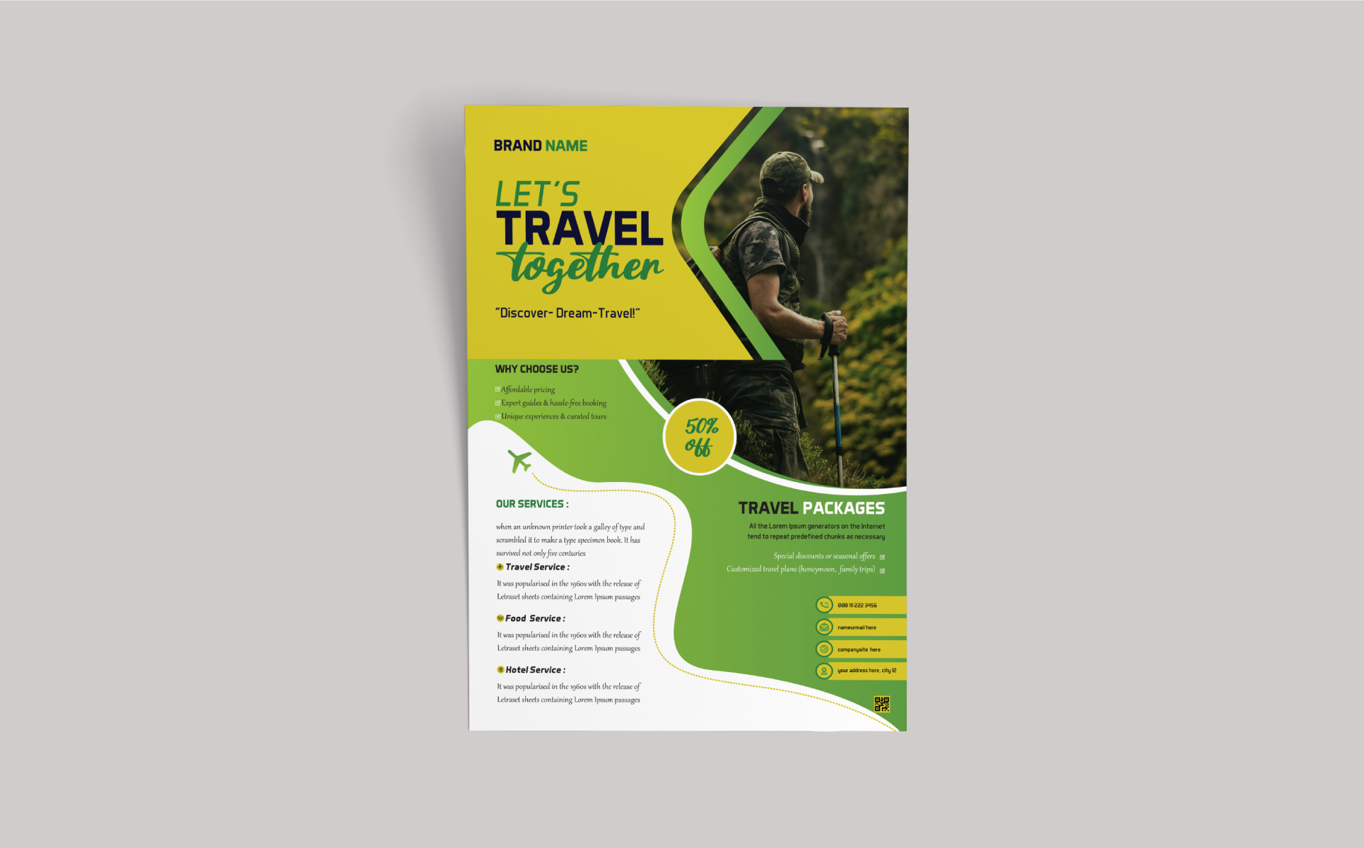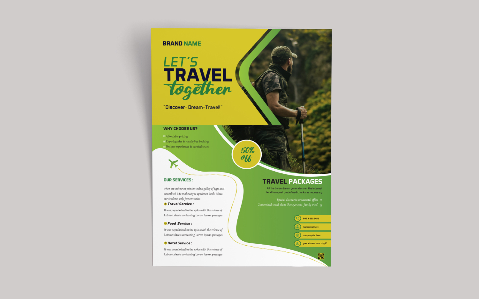 This is a creative Clean and Professional Travel Flyer template for your personal or company. Just drop in your own pictures and texts, and it’s ready for print Perfect for any kind of business, webinar, education, marketing promotion, digital marketing, marketing agency, etc.