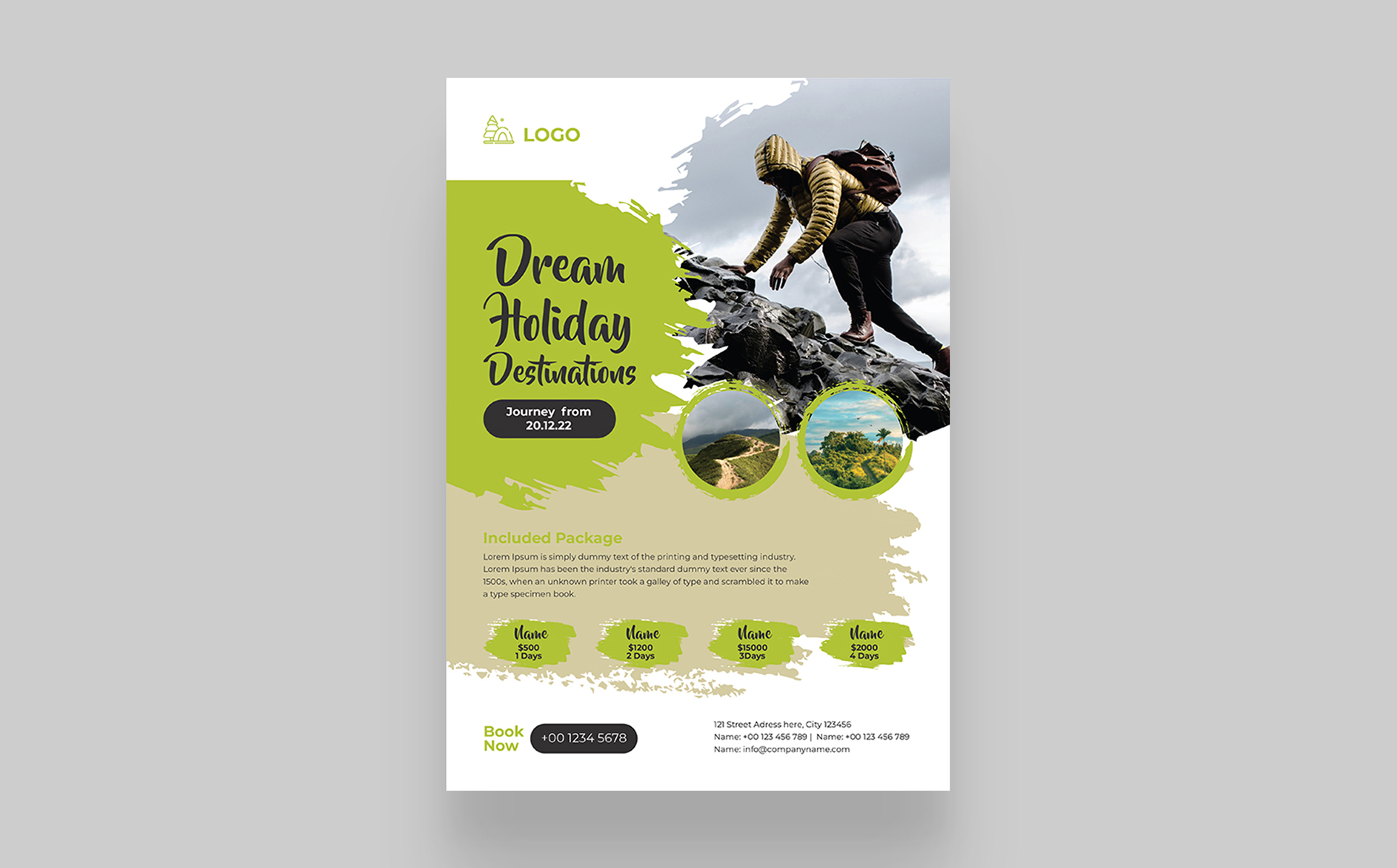 This template download contains illustrator vector files. All elements are editable and customizable. This flyer is great for a Travel company. Which you can easily edit. These flyers will help you promote your company.